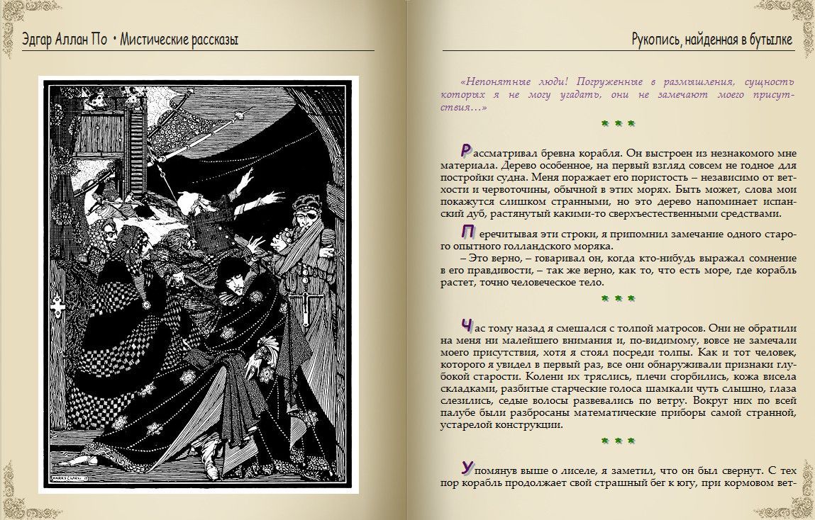 Описание:Сборник Эдгара Аллана По (1809–1849) Tales of Mystery and Imagination, или «Мистические рассказы», иллюстрированный рукой Гарри Кларка, вышел в 1923 году. Многие художники пробовали свои силы на этом поприще, но именно Кларку удалось передать жуткий, пугающий пафос мистических новелл.