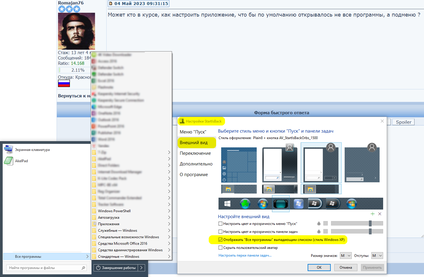 StartIsBack 2.9.19) так и не нашел опции экспорта настроек, может, этот файл создается автоматически и хранится в какой-то особой папке?