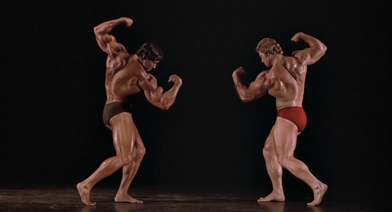 Описание: Арнольд Шварценеггер играет культуриста из Австрии по имени Джо, который готовится к выступлению на конкурсе "Мистер Вселенная" в небольшом тренажёрном зале. Зал этот мечтает купить большая корпорация, отправляющая на разведку Крейга. Но Крейг проникается образом жизни, который ведут местные завсегдатаи, и влюбляется в подругу Джо Мэри Тэйт...