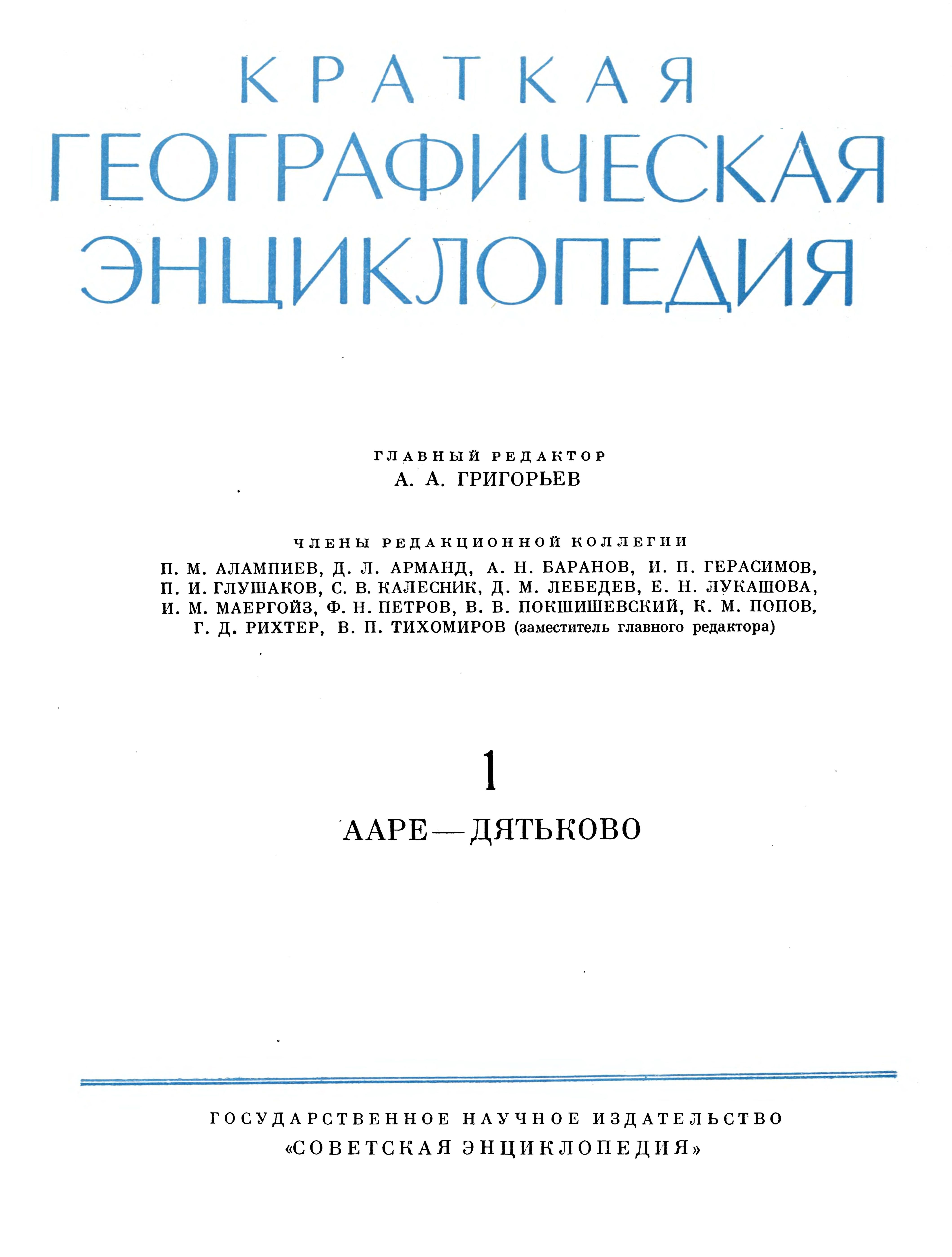Том 1. Ааре - Дятьково. 1960