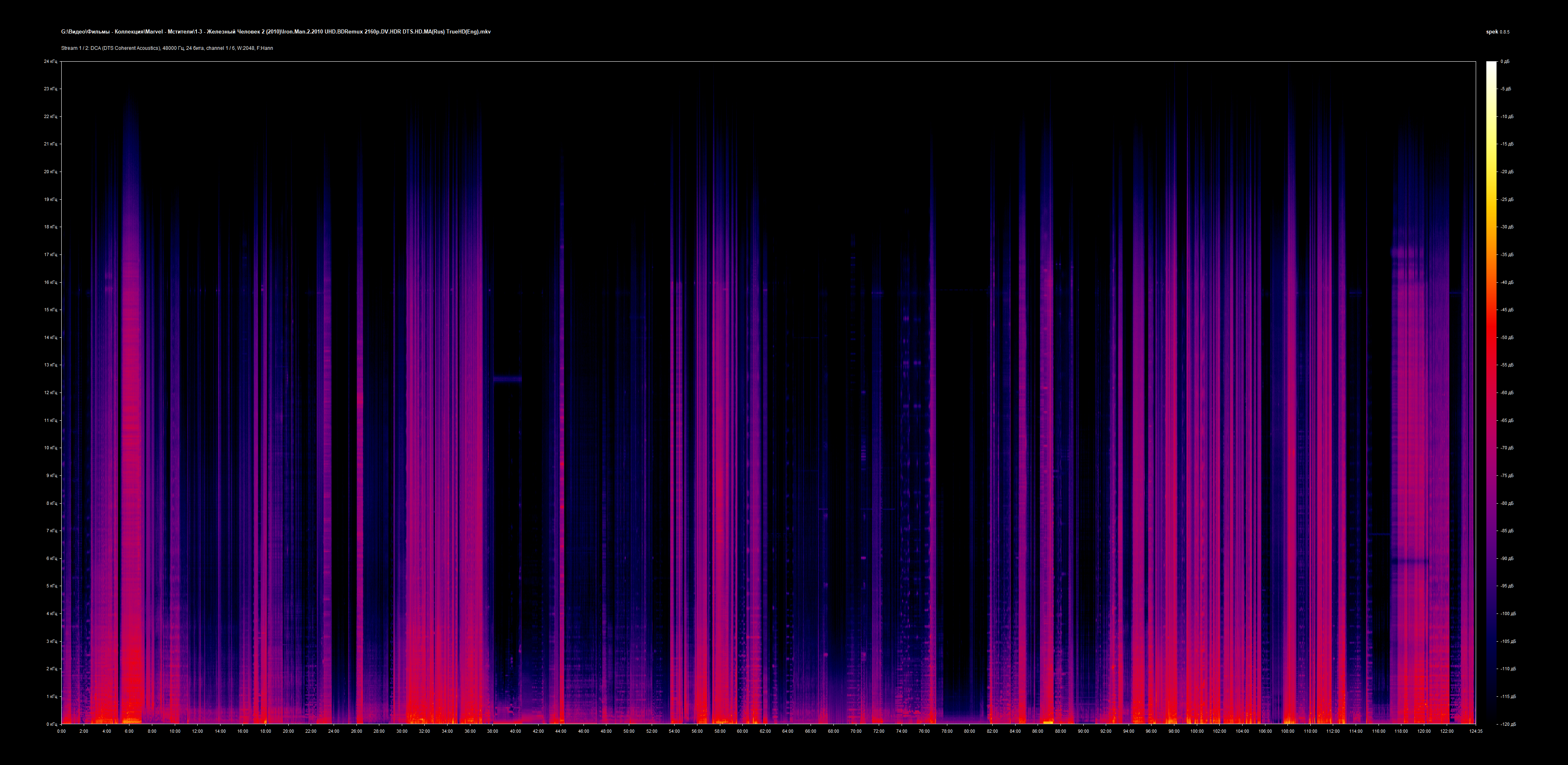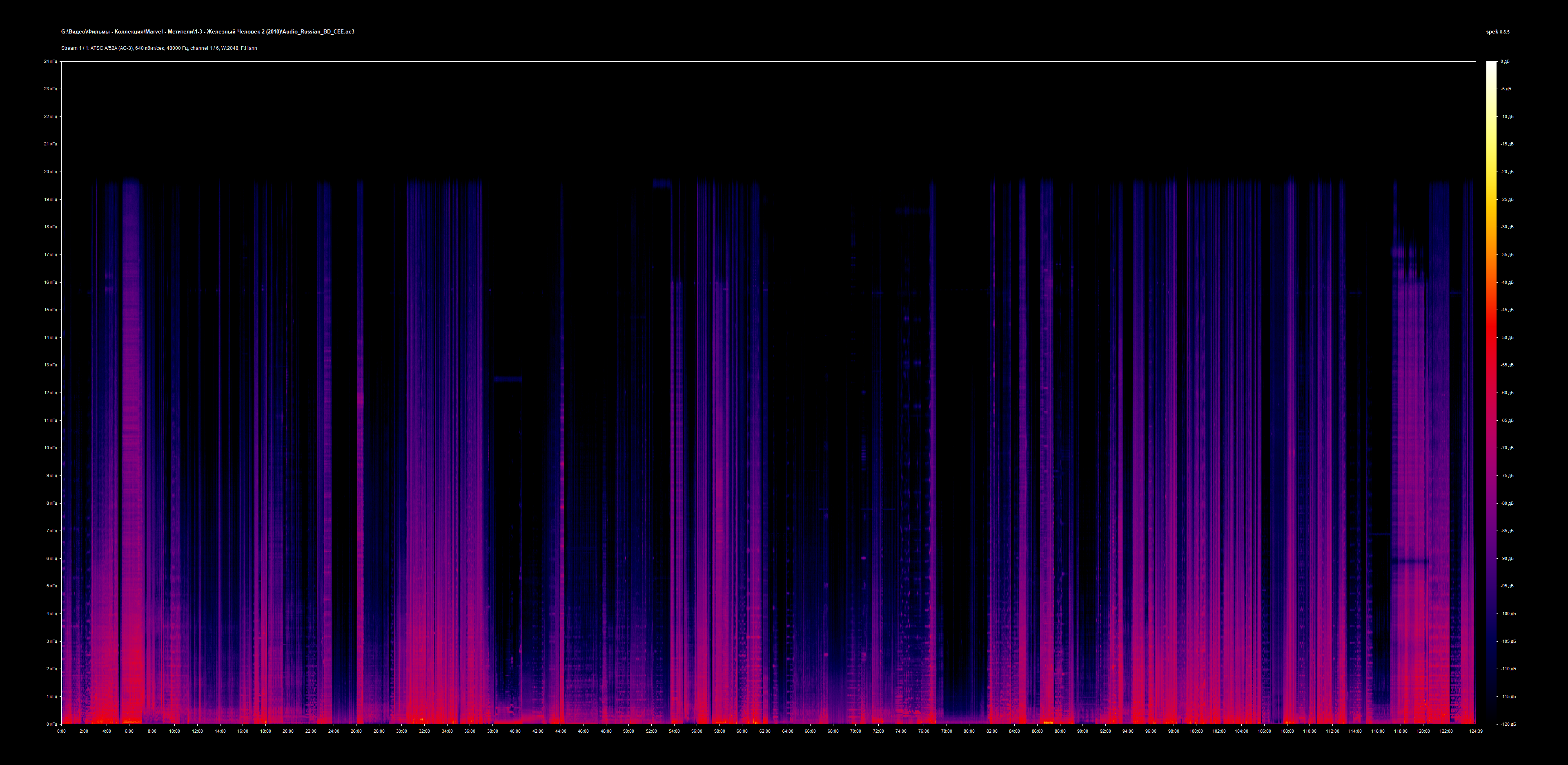 За основу взят релиз от arxivariys (выражаю автору благодарность) - из релиза удалены AVO дороги, оставлены только профессиональный студийный дубляж в несжатом формате от студии "Пифагор" (дорога №2, установлена по умолчанию) и оригинал (ради Dolby Atmos, дорога №3), также для большей совместимости добавлен дубляж с BD CEE в сжатом формате АС3 (№1). Анализ спектра аудиодорожек №1 и №2: