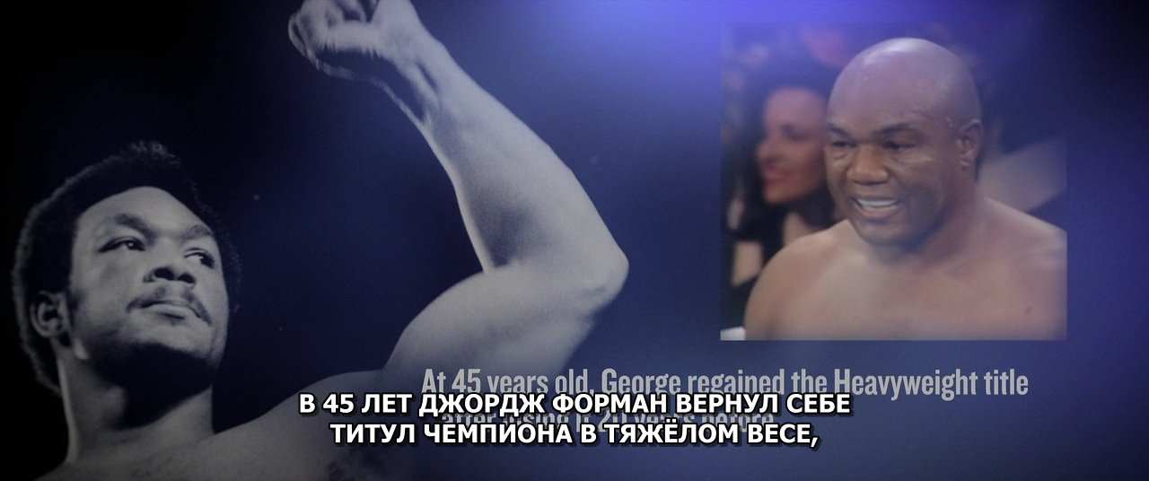 Описание: Джордж Форман — легендарный боксёр-профессионал в тяжёлом весе. Проведя детство в бедности, Форман направил всю природную агрессию на достижение титулов золотого медалиста Олимпийских игр и чемпиона мира в тяжёлом весе. Спустя годы успешной карьеры, пережив околосмертный опыт, Форман променял боксёрский ринг на проповедничество и служение церкви. Но, увидев нужду боксёрского общества в духовном и финансовом руководстве, Джордж Форман вернулся на ринг и снова творил историю, став старейшим чемпионом мира в тяжёлом весе и доказав, что в боксе возможно всё, несмотря на возраст...