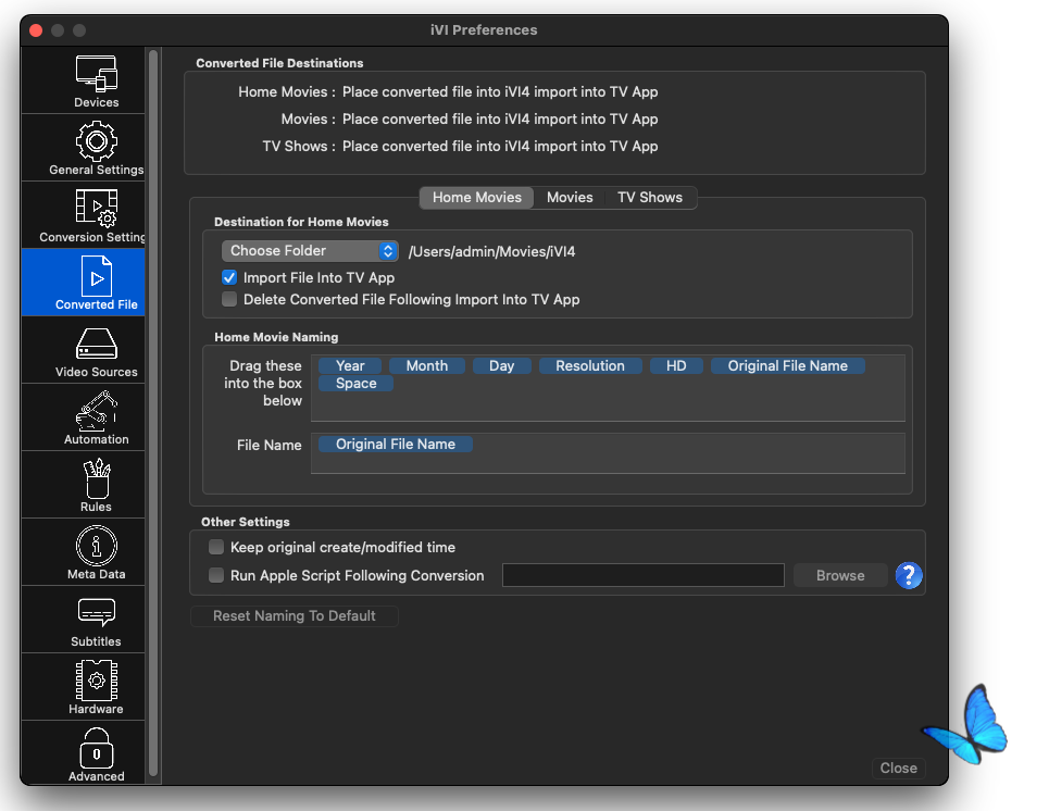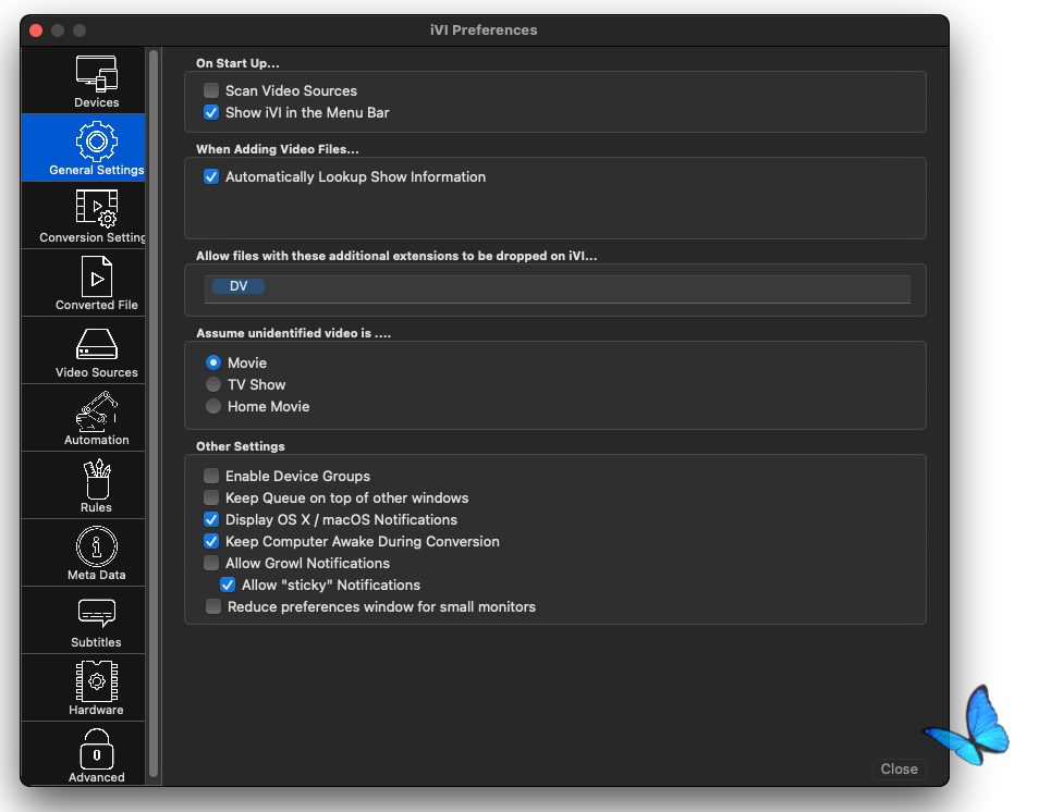 iVI способна конвертировать и импортировать видео в iTunes и iMovie методом drag and drop. iVI идентифицирует ТВ шоу и фильмы и автоматически добавит метадату: постеры, детали эпизодов, списки актеров и т. п. iVI конвертирует видео для проигрывания на Mac, AppleTV (1-3), iPad, iPhone and iPod. iVI поддерживает видео (включая 1080p и 720p), звук surround, несколько аудио дорожек (для разных языков), а также субтитры.