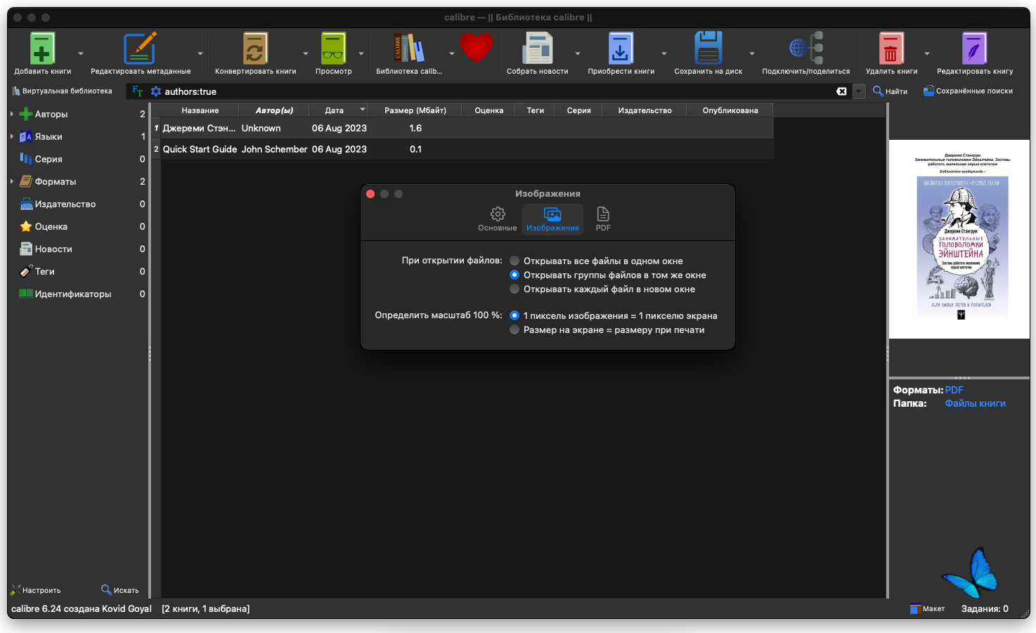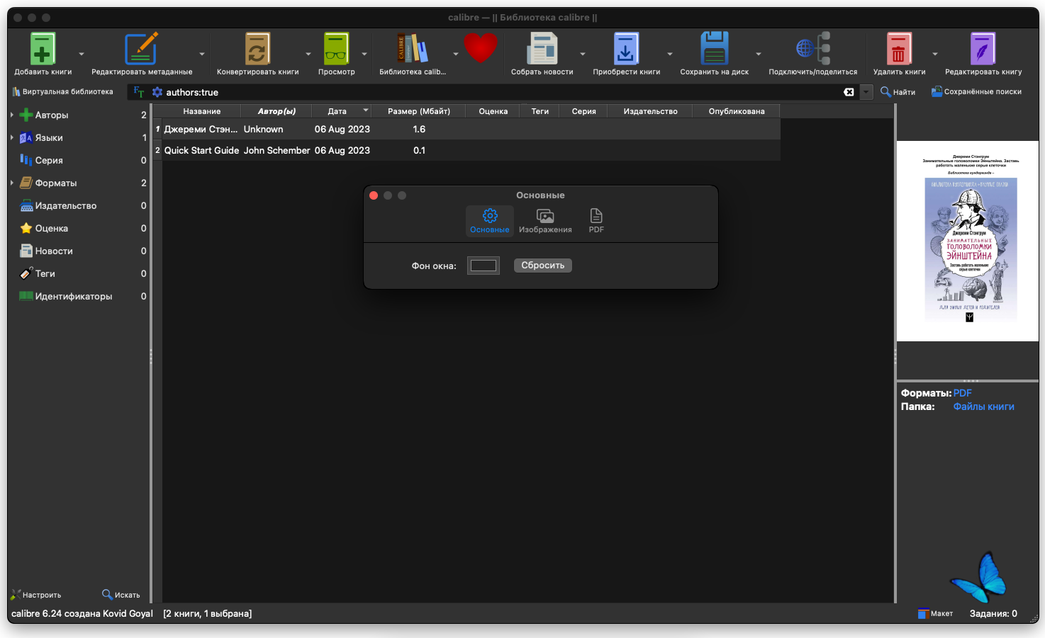 Встроенная читалка для книг • В Calibre встроены программы для чтения всех поддерживаемых форматов книг