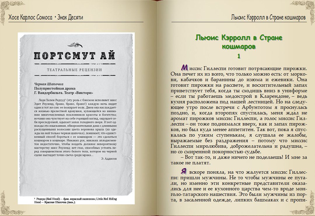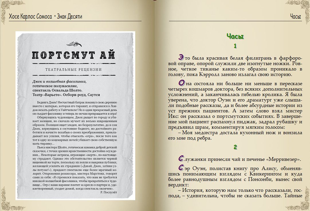 Хосе Карлос Сомоза – блистательный испанский писатель, чьи романы переведены на несколько десятков языков, лауреат премии «Золотой кинжал» и обладатель множества других литературных наград, создатель многослойных миров, где творятся очень страшные дела, автор фантастических, философских, исторических триллеров и хорроров. В «Знаке Десяти», продолжении «Этюда в черных тонах», возвращаются инфернально проницательный мистер Икс и его верная, ироничная, сильная и чувствительная медсестра Энн Мак-Кари, а вместе с ними в непредсказуемой интриге замешаны актеры, бутафоры и зрители жестоких подпольных театров, известные психиатры и, разумеется, Артур Конан Дойл.