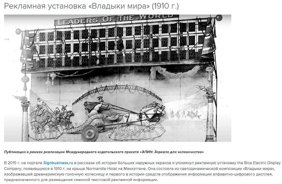 конечно враньё, ведь ещё раньше, в 1910 году, когда СССР ещё и в зародыше не было, на Манхэттене уже появилась реклама с принципом цифрового дисплея - скрин, link