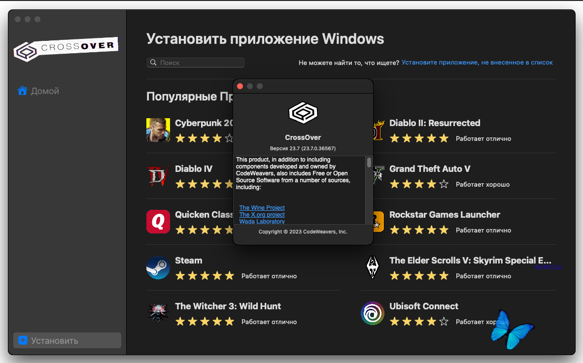 Описание:Пакет CrossOver основан на программном коде Wine и представляет собой оболочку для запуска программ под Windows на платформе macOS. Кроме этого, он позволяет запускать игры, что для многих пользователей является решающим фактором при выборе операционной системы.