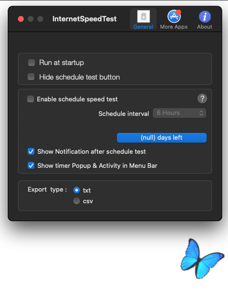 • Экспорт отчета формата .txt для тестов скорости в Интернете с датой и временем.