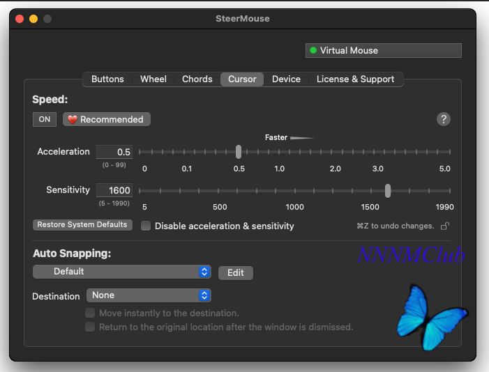 Описание:SteerMouse - это драйвер мыши, который позволяет Вам свободно настраивать кнопки, колесо прокрутки, чувствительность и скорость перемещения курсора. Обеспечивая поддержку USB и Bluetooth устройств, независимо от того, предназначены они для OS Windows, или Apple OS. С момента выпуска в 2005 году, SteerMouse привлекла десятки тысяч пользователей, которые считают для себя необходимым, использование драйвера на постоянной основе. SteerMouse имеет высокую репутацию за свою стабильность и мульти-функциональность.