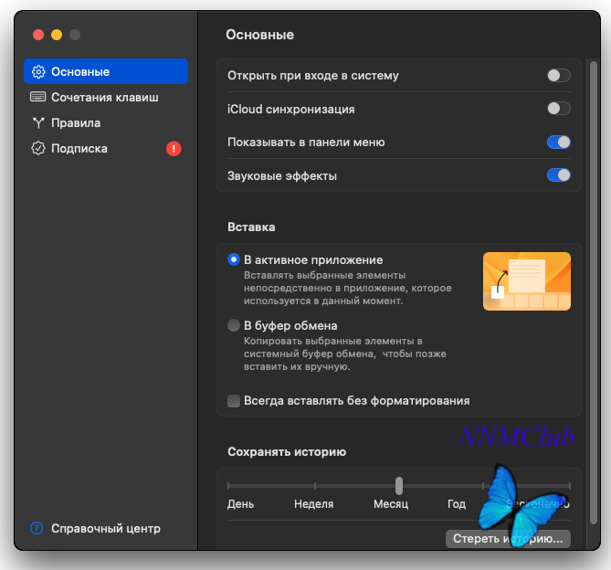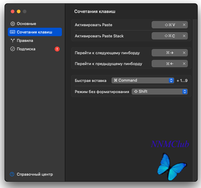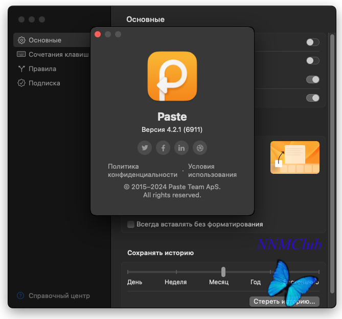Тип издания: macOS Software Релиз состоялся: 28.02.2024 Поддерживаемая ОС: macOS 12.0 + Разработчик: © 2015-2024 Paste Team Официальный сайт: ссылкаApp Store: ссылкаЯзык интерфейса: Русский, Английский, Немецкий и др. Лечение: не требуется ( инсталлятор уже пролечен) Системные требования: ● macOS 12.0 или выше ● Intel 64-bit CPU • Apple M+ chipОписание:Небольшая утилита, которая незаметно работает в фоном режиме системы и следит за историей буфера обмена, и готово в любой момент предоставить на выбор нужный фрагмент из истории копирования. Таким образом, упрощая работу пользователя в период подготовки любого материала из массы скопированной информации. Сохраняет все, что вы когда-либо скопировали и позволяет восстановить содержимое буфера обмена в любой момент. ● Расширяет буфер обмена и позволяет хранить неограниченное количество элементов; ● Распознает и работает с любым содержимым буфера обмена (Текст, Изображения, Файлы и т.д.); ● Вставка любого элемента истории одним кликом в активное приложение; ● Интеллектуальный и быстрый поиск по всей истории копирования; ● Элементами можно легко делиться или отправлять через AirDrop ● Продвинутые возможности для работы с форматированным текстом - Fixed functional key shortcuts for recording and enabled Esc to cancel recording. - Changed the default shortcuts for next/previous pinboard to Cmd+arrows. - Added a "Reveal in Finder" option to the context menu for files. - Other minor fixes & improvements. 1. Смонтировать образ, распаковать дистрибутив, ввести пароль администратора 2. PROFIT!
