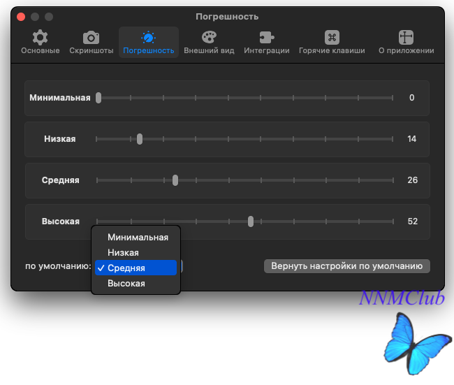 Настройте свой уровень • В строке меню вы можете настроить уровень допуска — от нуля до высокого. Это поможет вам уловить самые тонкие элементы, такие как тени и эффекты градиента. Вы также можете полностью настроить Pixel Snap в соответствии с тем, как вы его используете, включая наложения, такие как цвета, темы и ярлыки