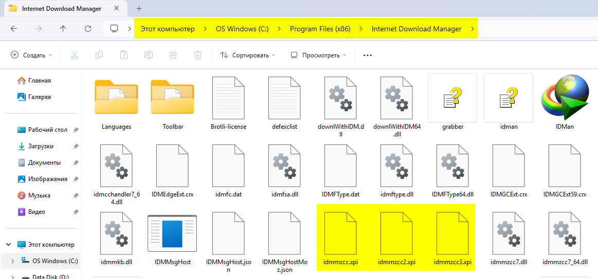 Если возникает проблема с интеграцией для браузеров Mozilla (Firefox, Waterfox и т.д.) установите расширение вручную. В папке с программой у вас есть три файла с расширением ".xpi". Расширения имеют одинаковое имя - idmmzcc.xpi и дополнительную цифру в конце: idmmzcc2.xpi и idmmzcc3.xpi Выберите idmmzcc.xpi (без номера) для Firefox версии от 1.5 до 26 включительно. Выберите idmmzcc2.xpi для Firefox с версии 27 до версии 52 включительно. Выберите idmmzcc3.xpi для Firefox 53 и более новых версий.