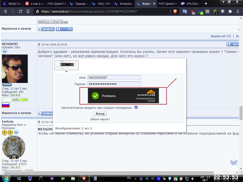 У сайта проблем со входом нет от слова совсем. Если бы у сайта была глобальная проблема, мы бы об этом уже знали от других пользователей, я бы в числе первых с этим столкнулся. Я закрываю и открываю браузер много раз в день и мне не приходится каждый раз проходить эту проверку Cloudflare, но иногда приходится делать это тогда, когда перелогиниваюсь в тестовый профиль и обратно или использую окно InPrivate. Если Вы не разлогиниваетесь перед закрытием браузера, то предположительная причина проблемы у Вас либо в агрессивных настройках Brave, либо в работе каких-то расширений. Либо, не исключено, что причина в способе обхода интернет блокировок - возможно Cloudflare'у что-то не нравится и каждый устраивается такая проверка, но об этом мне трудно судить, т.к. я могу проверить на себе лишь некоторые из методов обхода интернет блокировок, а о своём Вы даже не сообщали. Чтобы исключить версию с браузером, используйте для теста и сравнения чистую установку другого браузера с настройками по умолчанию и без каких-либо расширений и надстроек к нему, для этого проще всего взять портативную версию Google Chrome с PortableApps.com, https://portableapps.com/apps/internet/google_chrome_portableЕсли с ним всё будет иначе, т.е. нормально, тогда вернетесь к настройкам Brave и его расширениям. А если всё будет без изменений, продолжайте поиск причины в другом месте, продолжая временно использовать этот же браузер. |