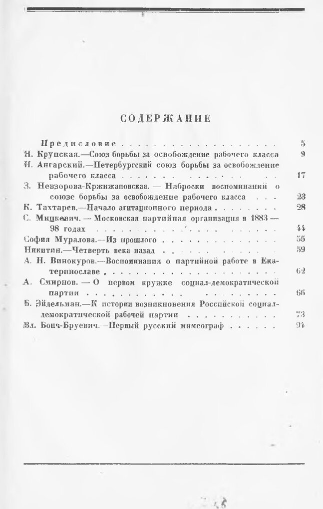 В первый выпуск входят воспоминания, посвященные: а) первым шагам РСДРП, образованию и работе кружков, разбросанных в различных местах России, вначале не знавших друг о друге, но имевших одну и ту же целевую установку и сходную между собой программу, б) сговору представителей этих кружков и первому съезду партии в 1898 году.