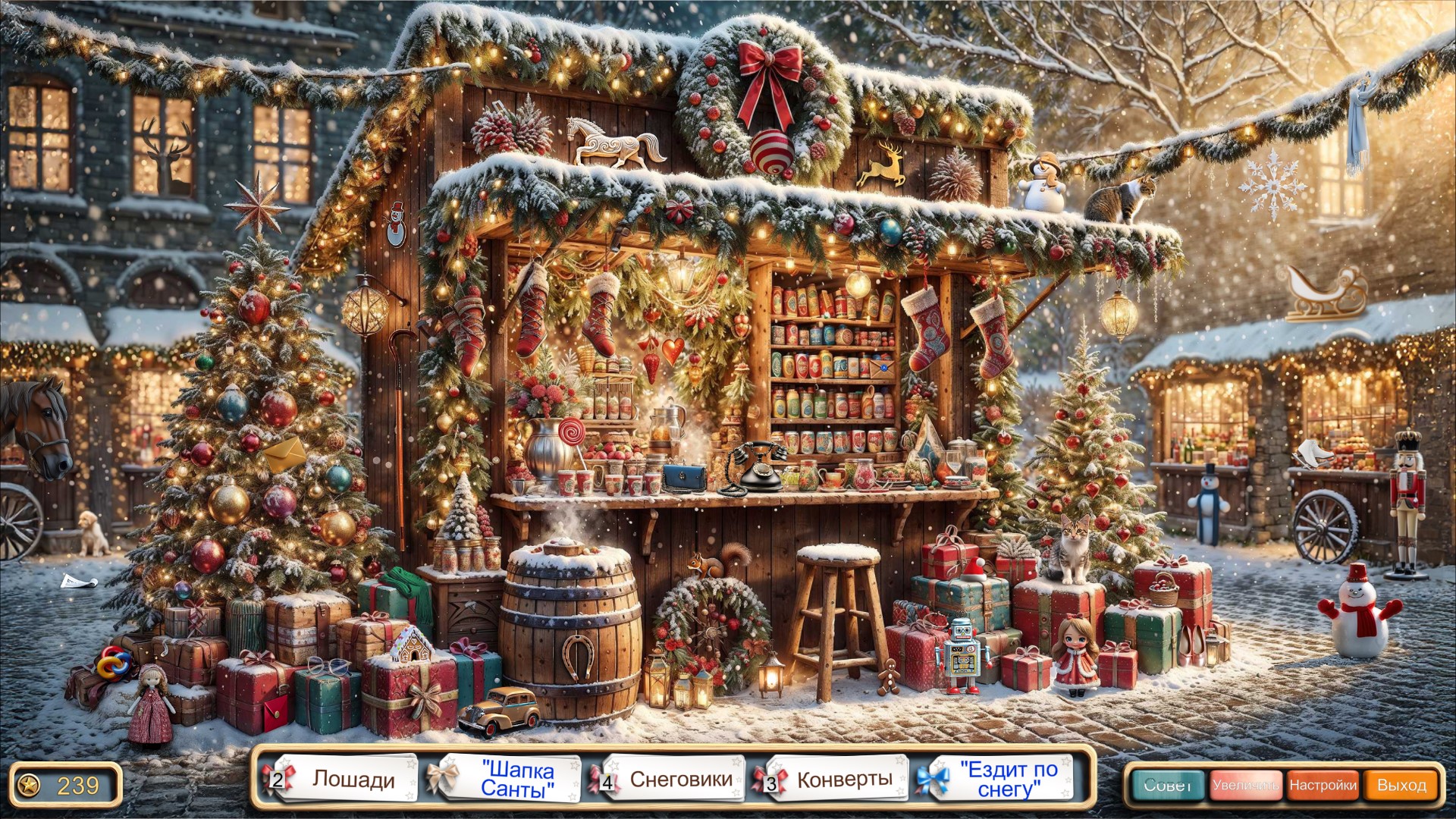 Дата выхода: 2024 Жанр: Я ищу, Казуальная Официальный сайт: ссылкаРазработчик: Mixo Games Издатель: WildTangent Games Язык интерфейса: Русский Язык субтитров: Русский Локализация: Шмель Большой Версия: 1.0 Тип издания: Unofficial Системные требования:Операционная система: Windows 7, 8, 10, 11 Процессор: 2.0 ГГц и выше Оперативная память: 1024 MБ и выше DirectX: DirectX 9.0 или выше Свободного места на жестком диске: 2.42 ГБТаблетка: Не требуется Описание:Встречайте красочную новогоднюю игру. Приготовьтесь погрузиться в мир, где вас ждут праздничное веселье и зимняя магия. Исследуйте множество игр на праздничную тематику, от изысканных головоломок с поиском предметов в очаровательных рождественских сценах до увлекательных пазлов, в которых собраны чудеса зимы. Украсьте свою праздничную комнату коллекционными украшениями, которые добавят блеска и тепла вашему праздничному оформлению. За каждое достижение вы получите новое сверкающее сокровище! Хотите приключений? Нажмите кнопку «Удиви меня!», чтобы внести праздничную нотку, и узнайте, какое радостное испытание ждет вас дальше. - Дополнительные уровни для бесконечного праздничного веселья и поднятия настроения!