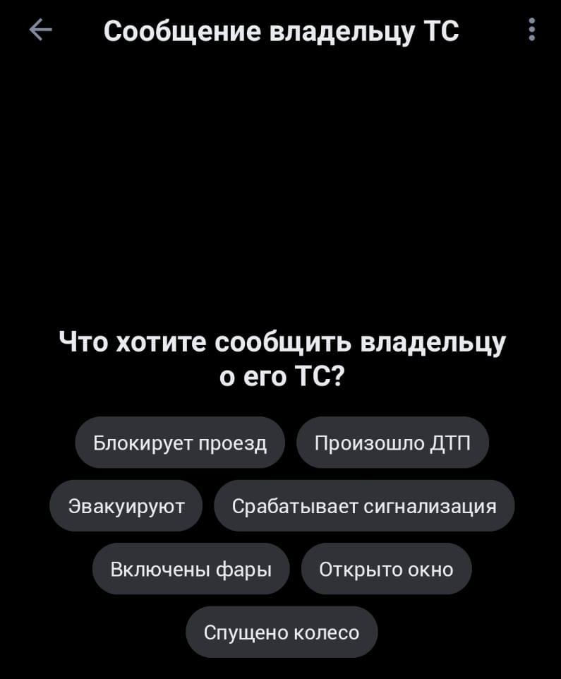 Новая функция позволяет связаться с автовладельцем по регистрационному номеру его автомобиля. Можно сообщить, к примеру, что его авто загораживает проезд, об эвакуации транспортного средства, ДТП, срабатывании сигнализации, включенных фарах, открытом окне или спущенном колесе.