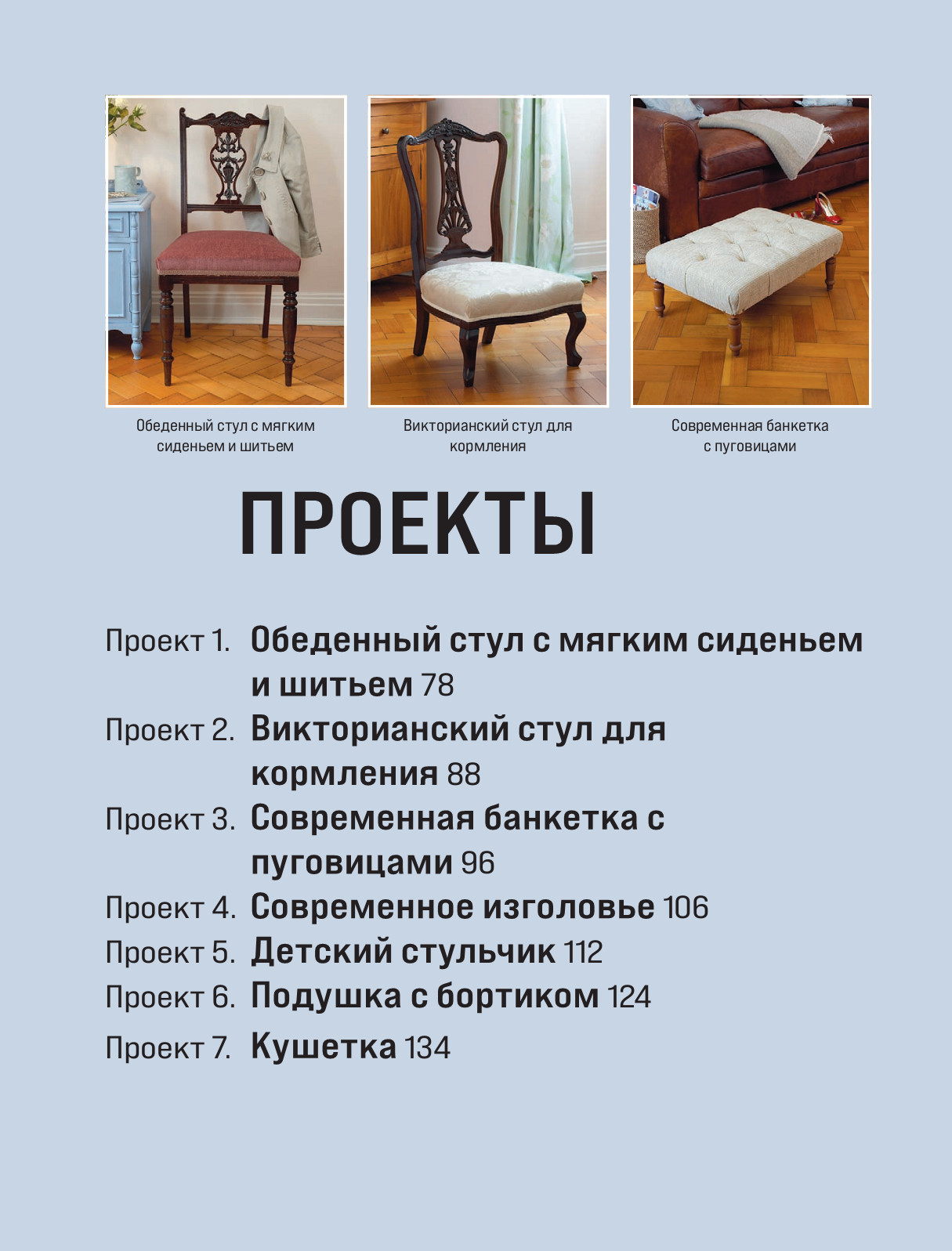 - Пошаговые проекты: Проверьте свои новые навыки на семи уникальных проектах — от обеденного стула до очаровательного детского кресла.