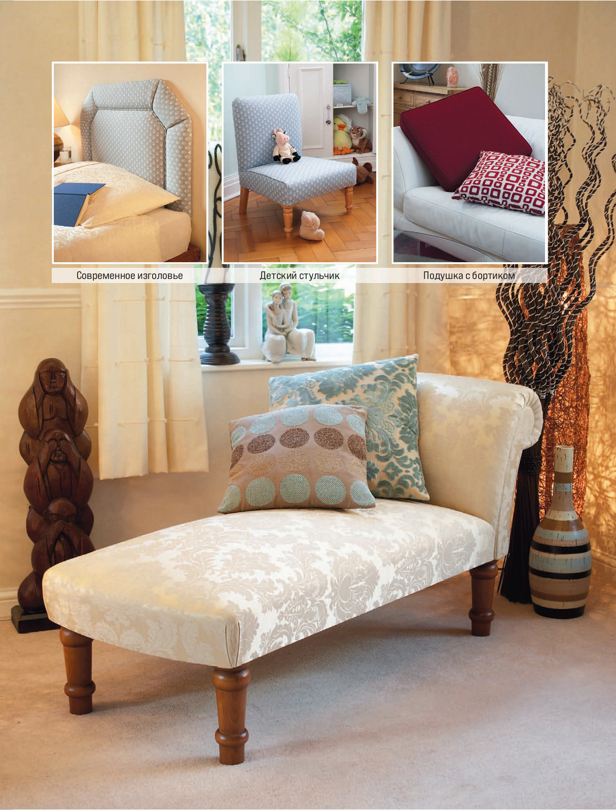 Каждый этап работ представлен на ярких полноцветных фотографиях, показывающих все детали — от подготовки каркаса и крепления ремней до нанесения пены или войлока и добавления стильных отделок.