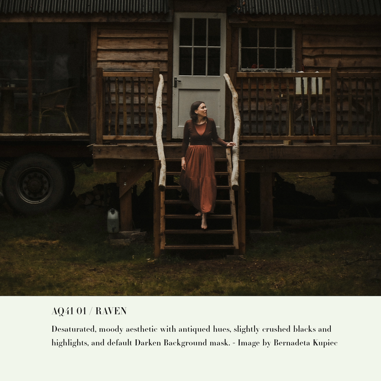 Описание:Пресеты Raven созданы для создания глубокой, угрюмой атмосферы с акцентом на драматические тени, насыщенный черный цвет и глубокие тона. Вдохновленные таинственной красотой сумерек, эти пресеты преобразуют ваши изображения в захватывающие кинематографические произведения. Raven выявляет завораживающий контраст между светом и тьмой, одновременно усиливая тонкие детали с помощью легкого обесцвечивания и теплых полутонов. Идеально подходит для фотографов, которые хотят создать загадочную, задумчивую эстетику с оттенком мистики.