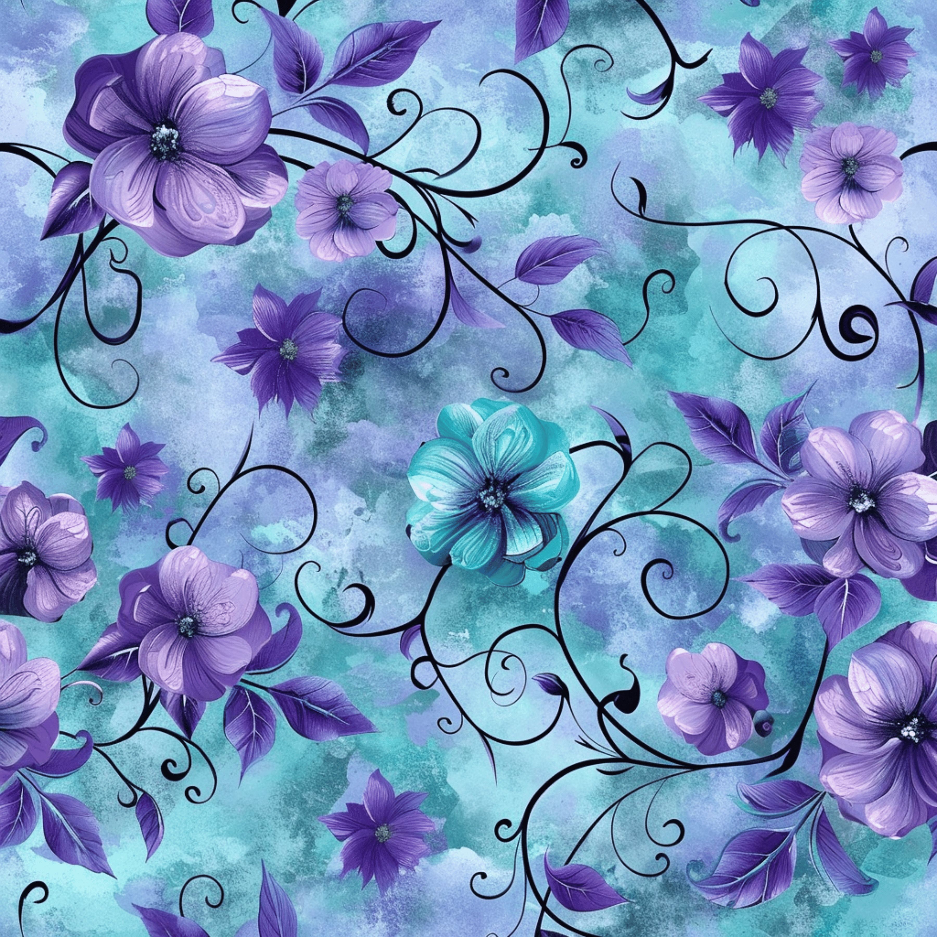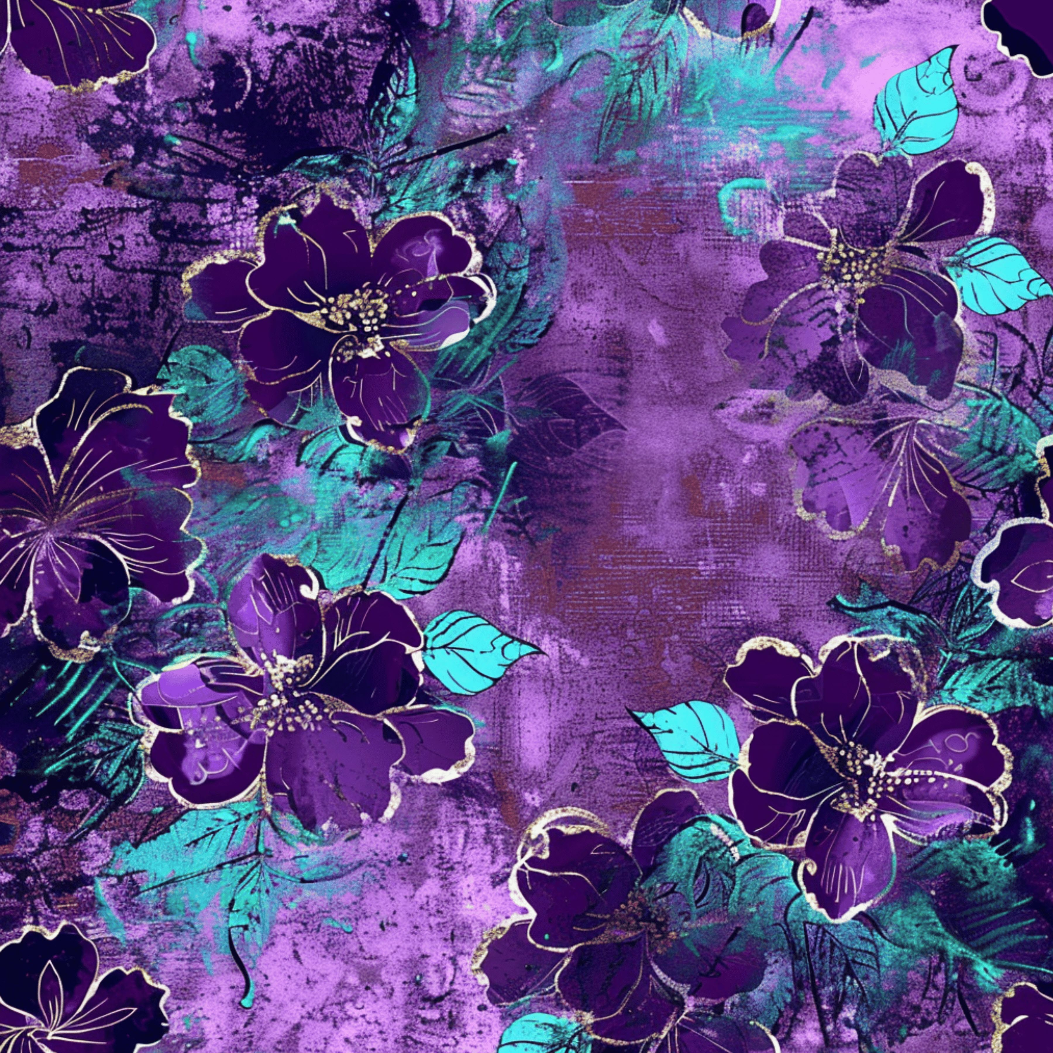 Purple and Turquoise Luxury Floral Texture Digital paper