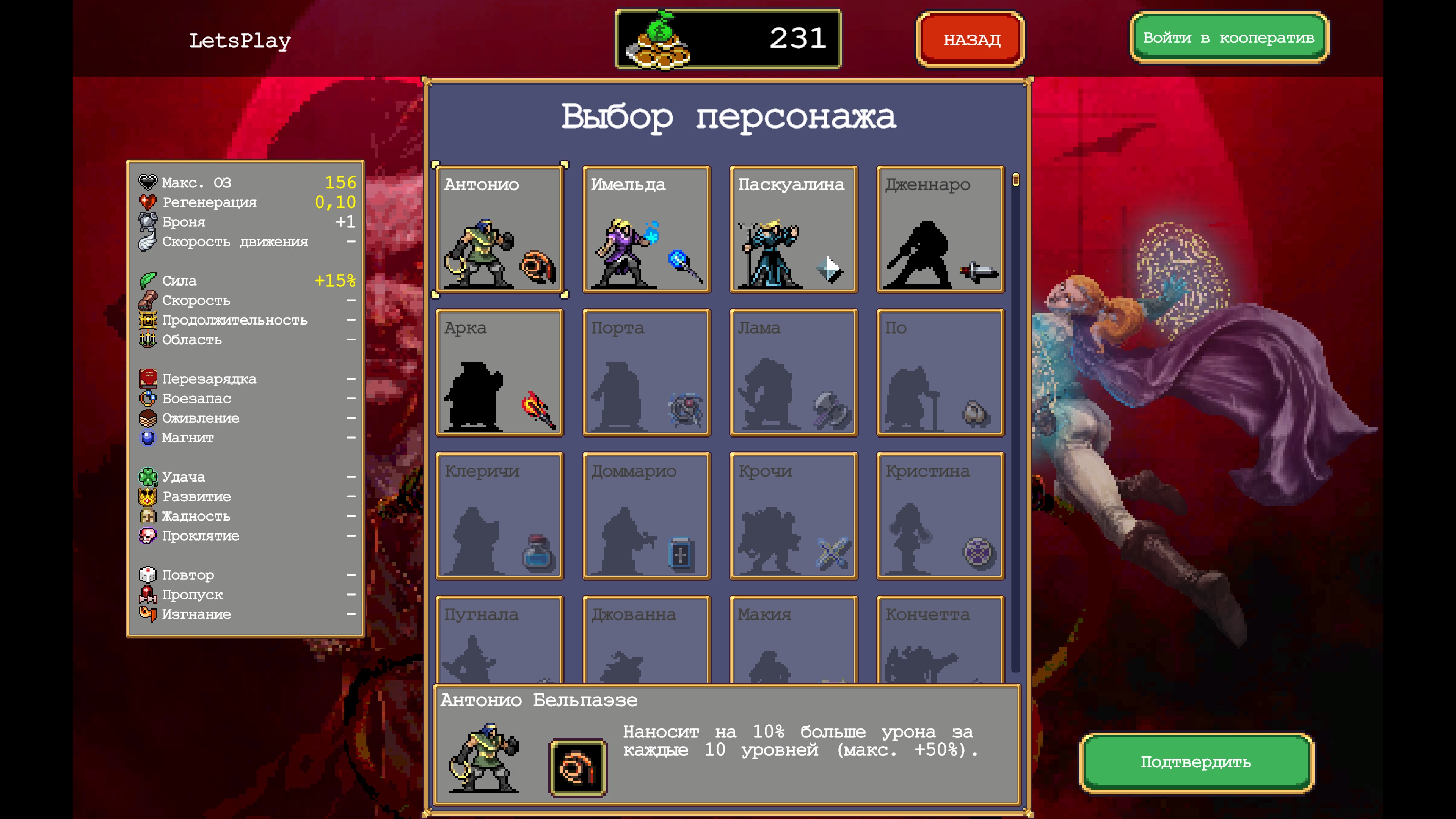 Описание:Vampire Survivors — казуальная игра в стиле готического хоррора с элементами упрощенного рогалика. Здесь каждое ваше решение может вызвать лавину последствий для орд монстров, с которыми вам предстоит столкнуться. Ад опустел, а все демоны пришли сюда, и теперь уже некуда бежать или прятаться. Вам остается только выживать, сколько сможете, но однажды смерть обязательно положит конец и вашим потугам. Собирайте золото в каждый заход, чтобы купить улучшения и помочь следующему выжившему. - Можете не спешить со сбором предметов и самоцветов: они не исчезают.