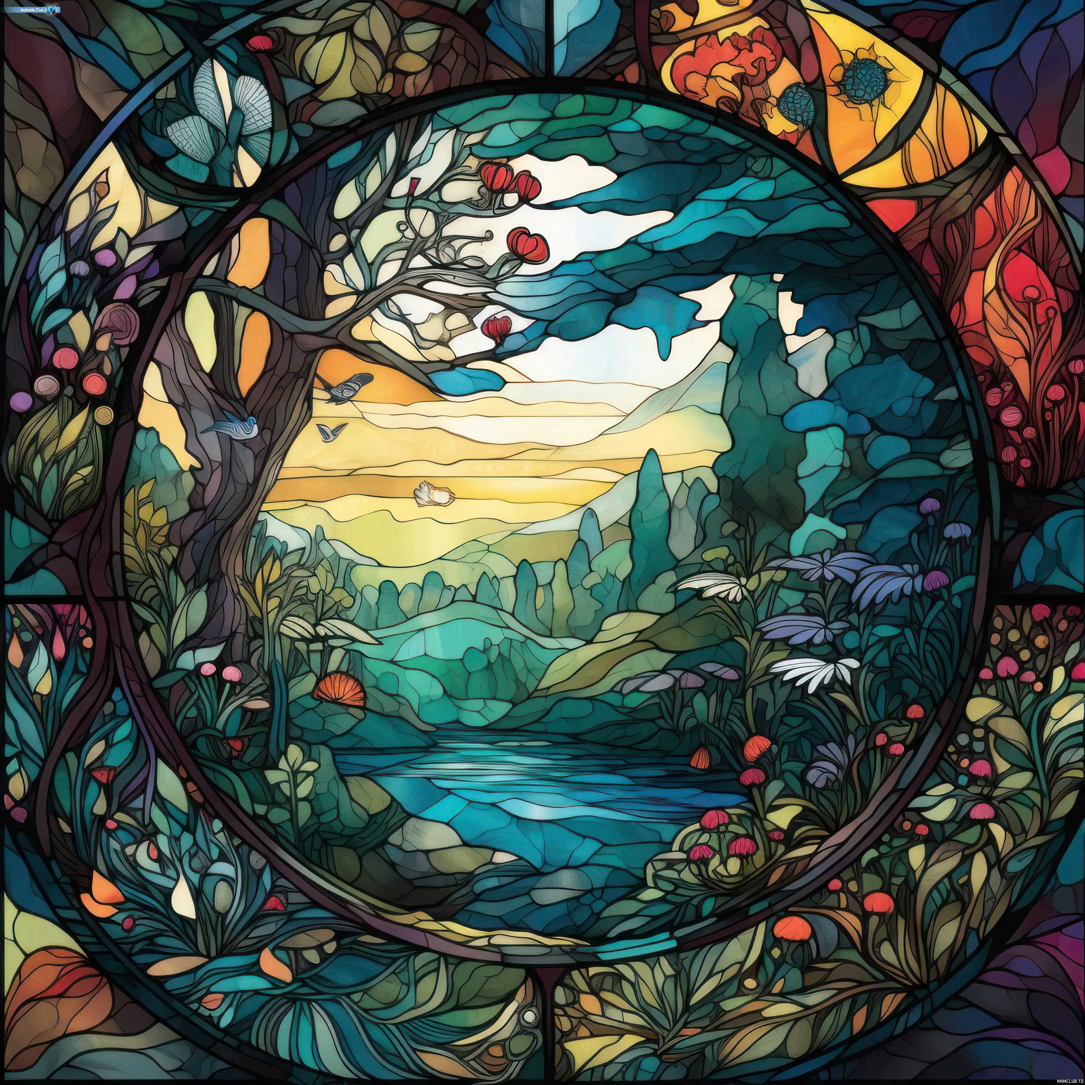 Папка Creative Fabrica - Fantasy Stained Glass Realms Artwork Backgrounds Fantasy Stained Glass Realms Artwork Background