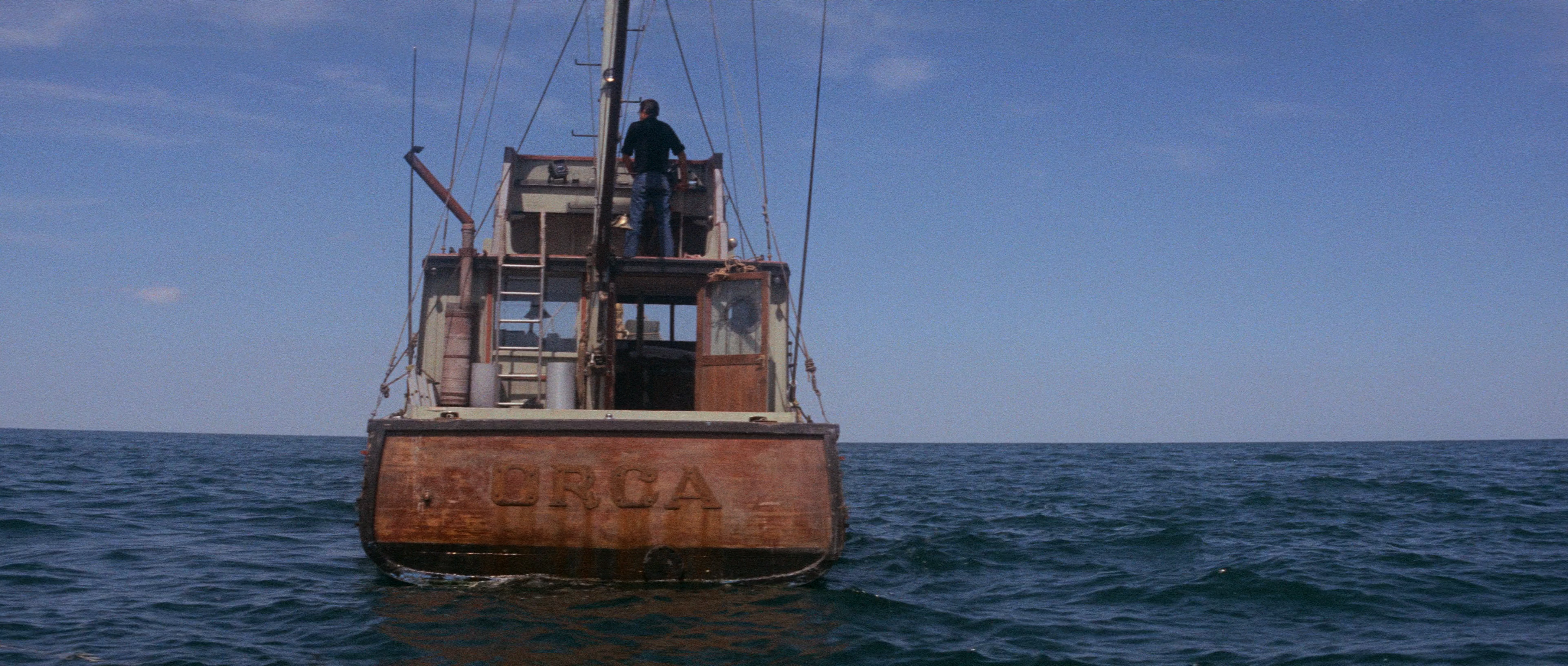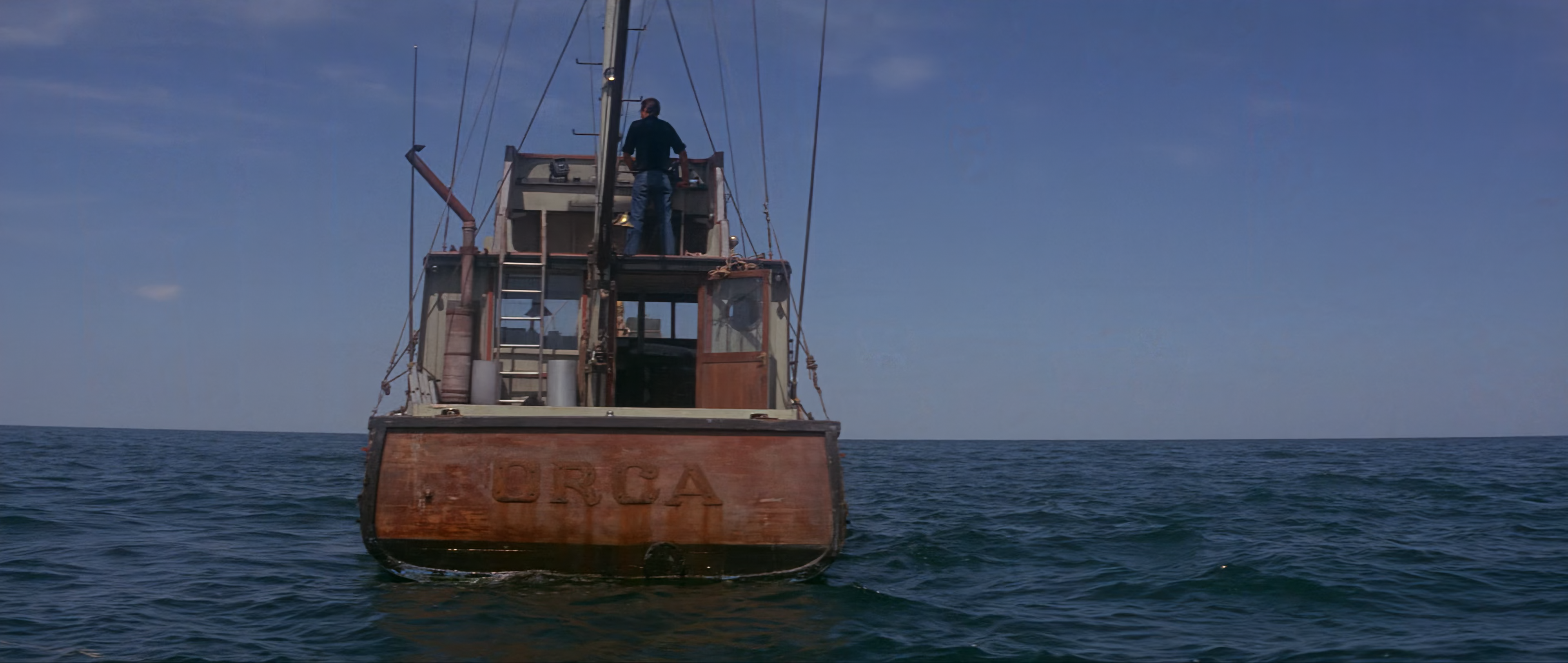 Описание: Действие картины протекает в течение пяти дней — на острове Э́мити, где расположен небольшой курортный городок. В этом тихом и солнечном месте произошли ужасные трагические события, начало которым было положено ранним утром, когда шеф местной полиции Мартин Броуди и его помощник находят на берегу остатки тела девушки. Она стала первой жертвой огромной белой акулы, которая появилась у берегов Эмити… С каждым днем число жертв кровожадной акулы продолжает увеличиваться. Сможет ли отважный охотник на акул, ветеран Второй мировой войны, рыбак Квинт на своём судне выловить и убить акулу-людоеда? В опасную морскую экспедицию вместе с ним отправляются Мартин Броуди и прибывший на остров эксперт из национального института океанографии Мэтт Хупер.