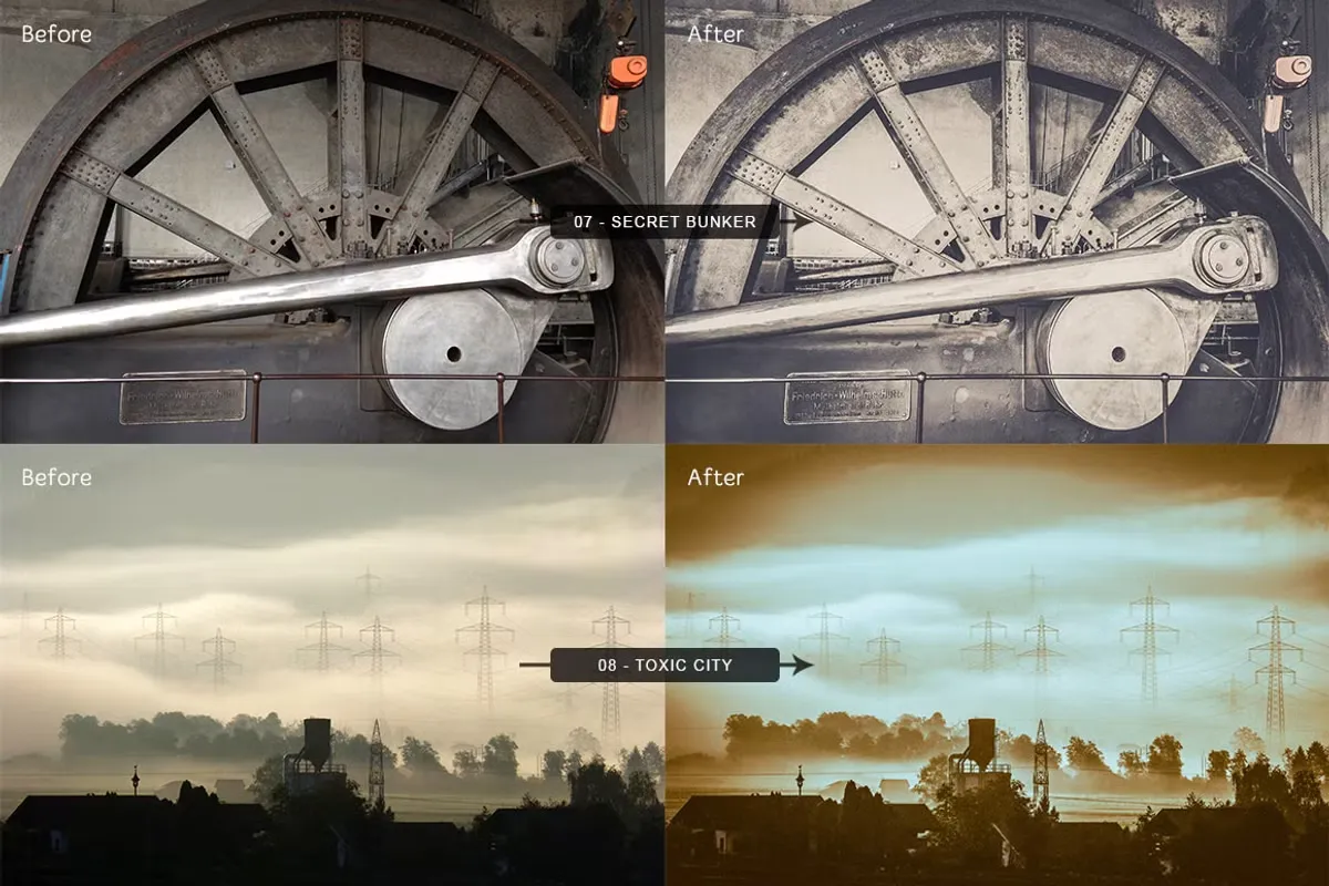 Каждый пресет превратит обычное изображение в нечто из мрачного и далекого будущего.