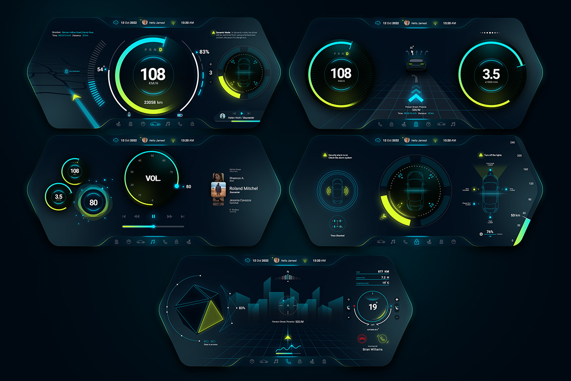 Описание:Концепции HUD для умных автомобилей представляют собой концепции пользовательского интерфейса приборной панели для футуристических беспилотных автомобилей, близкие по стилю к Tesla, Rivian, Hyundai, BMW, Mercedes-Benz и Audi.