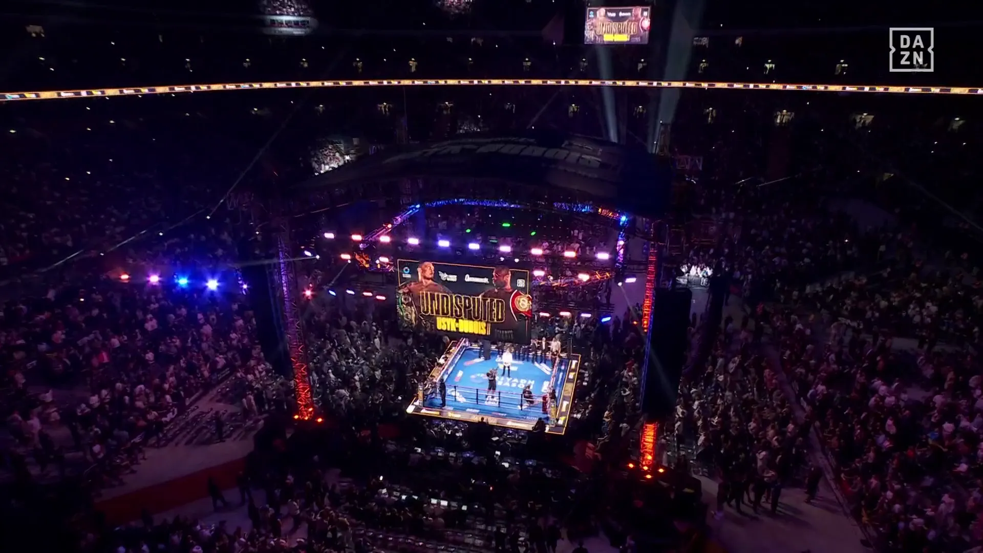На кону стоял титул абсолютного чемпиона мира в супертяжелом весе. До боя пояс IBF принадлежит британцу, а Усик владел титулами WBC, WBA, WBO.