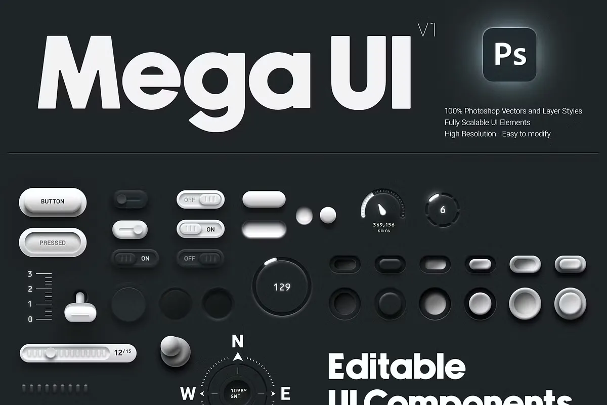 Описание:Представляем Mega UI V1 — премиальный набор для разработки пользовательского интерфейса для Photoshop, идеально подходящий для дизайнеров, создающих стильные и современные интерфейсы. Этот высококачественный набор включает в себя: