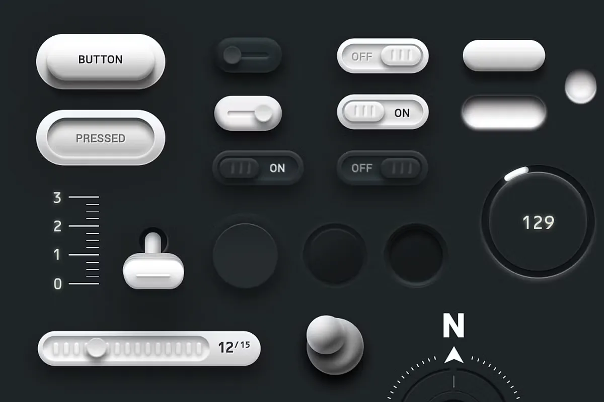 - Универсальное использование: включает переключатели (ВКЛ/ВЫКЛ), элементы управления направлением и визуализацию данных для динамических интерфейсов.