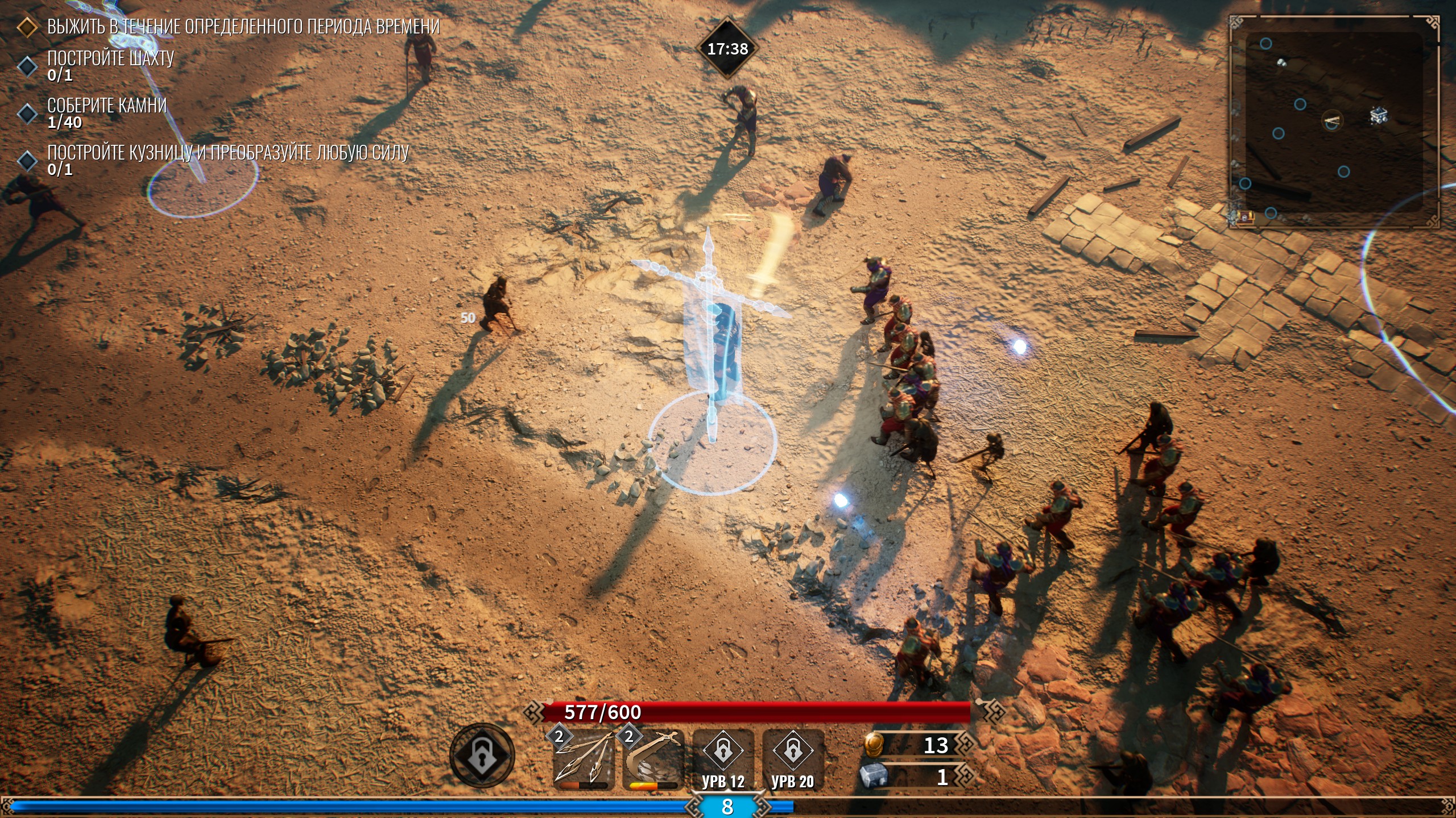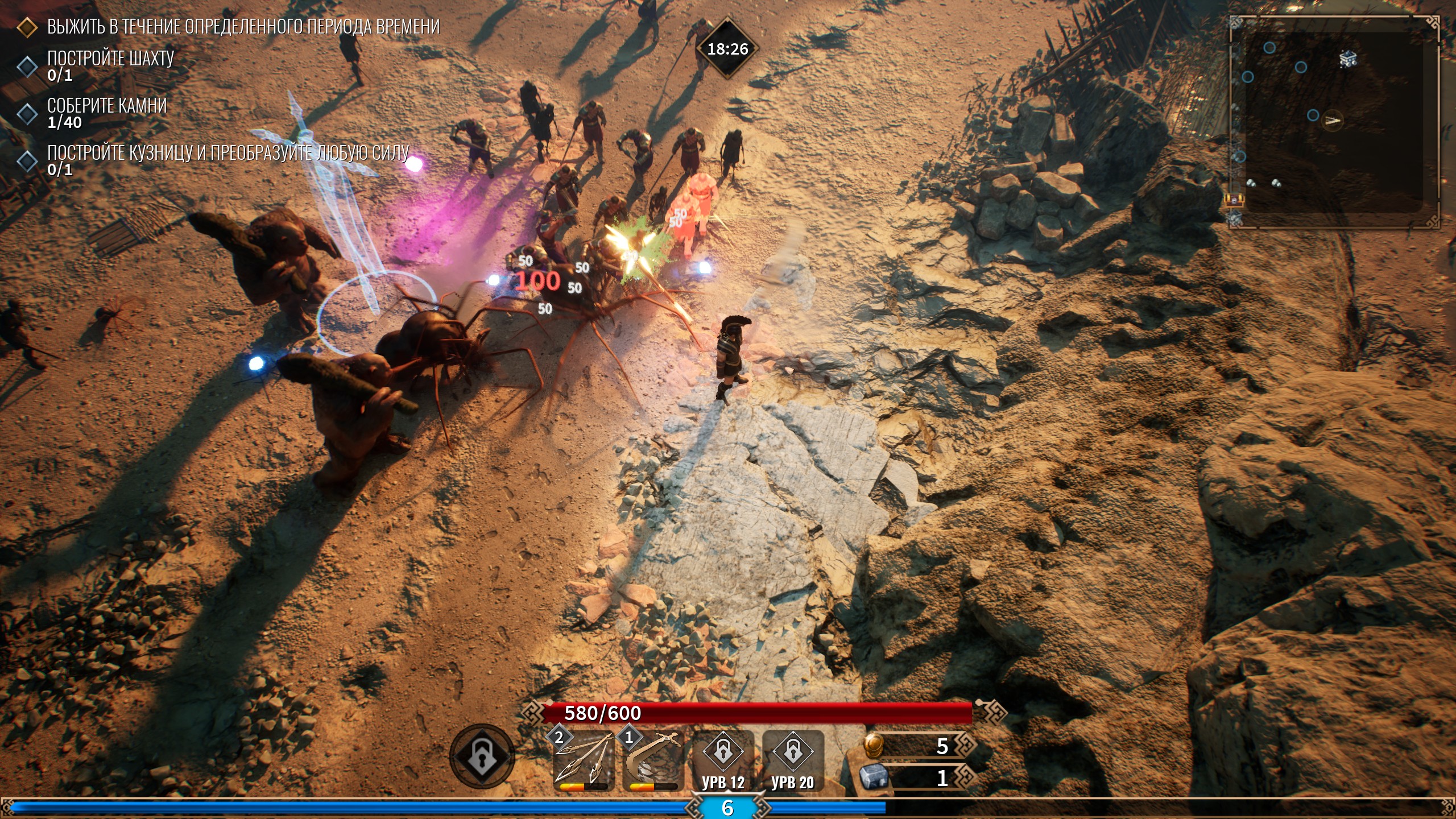 Устанавливай огненные турели, возводи алтари исцеления или призывай мирмидонян сражаться на твоей стороне. В отличие от других survivor-like игр, твоим главным оружием может стать сама карта. Постройки - это не просто защита, а тактические инструменты для контроля толпы, поддержки и урона, способные переломить ход битвы.