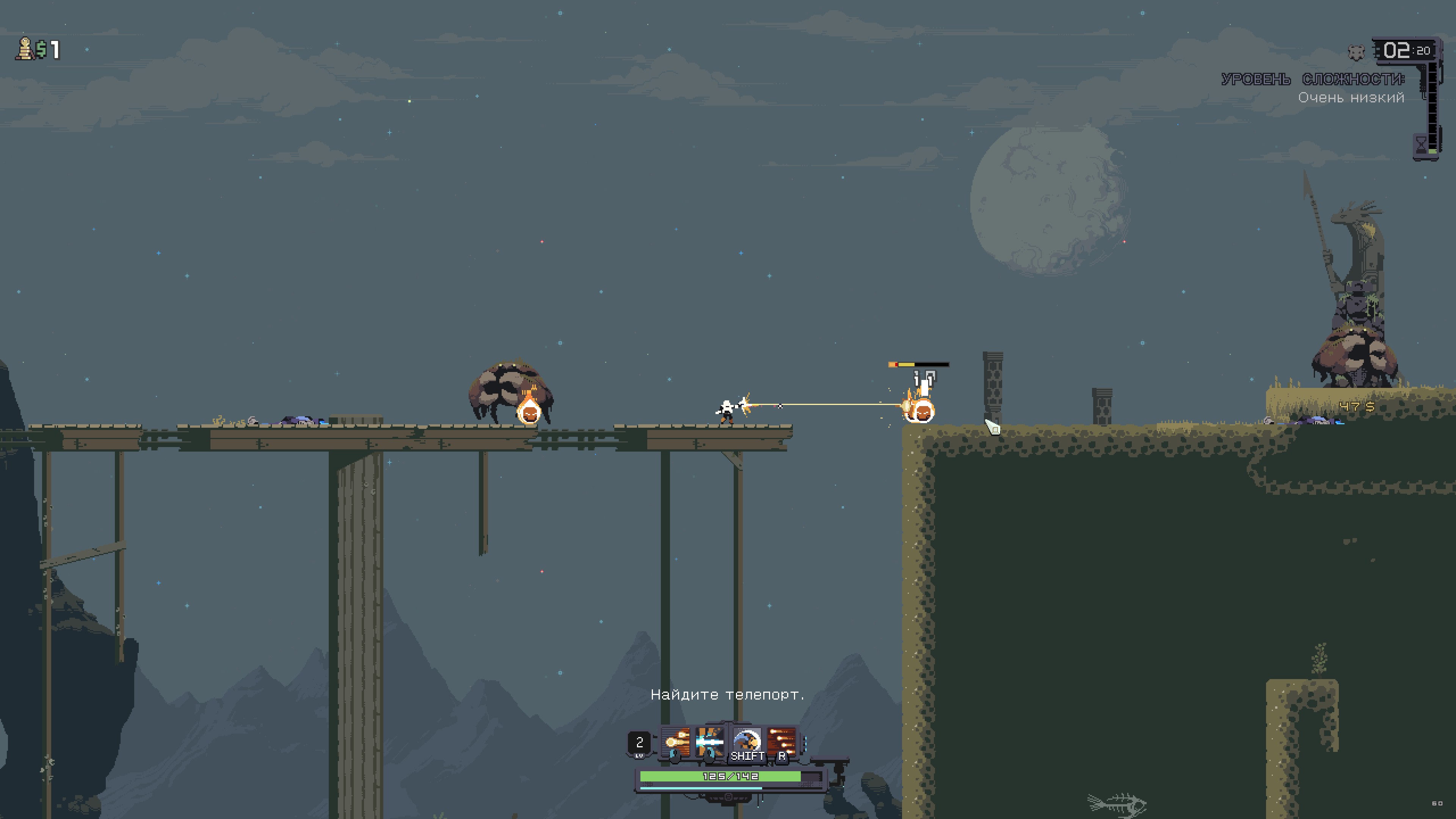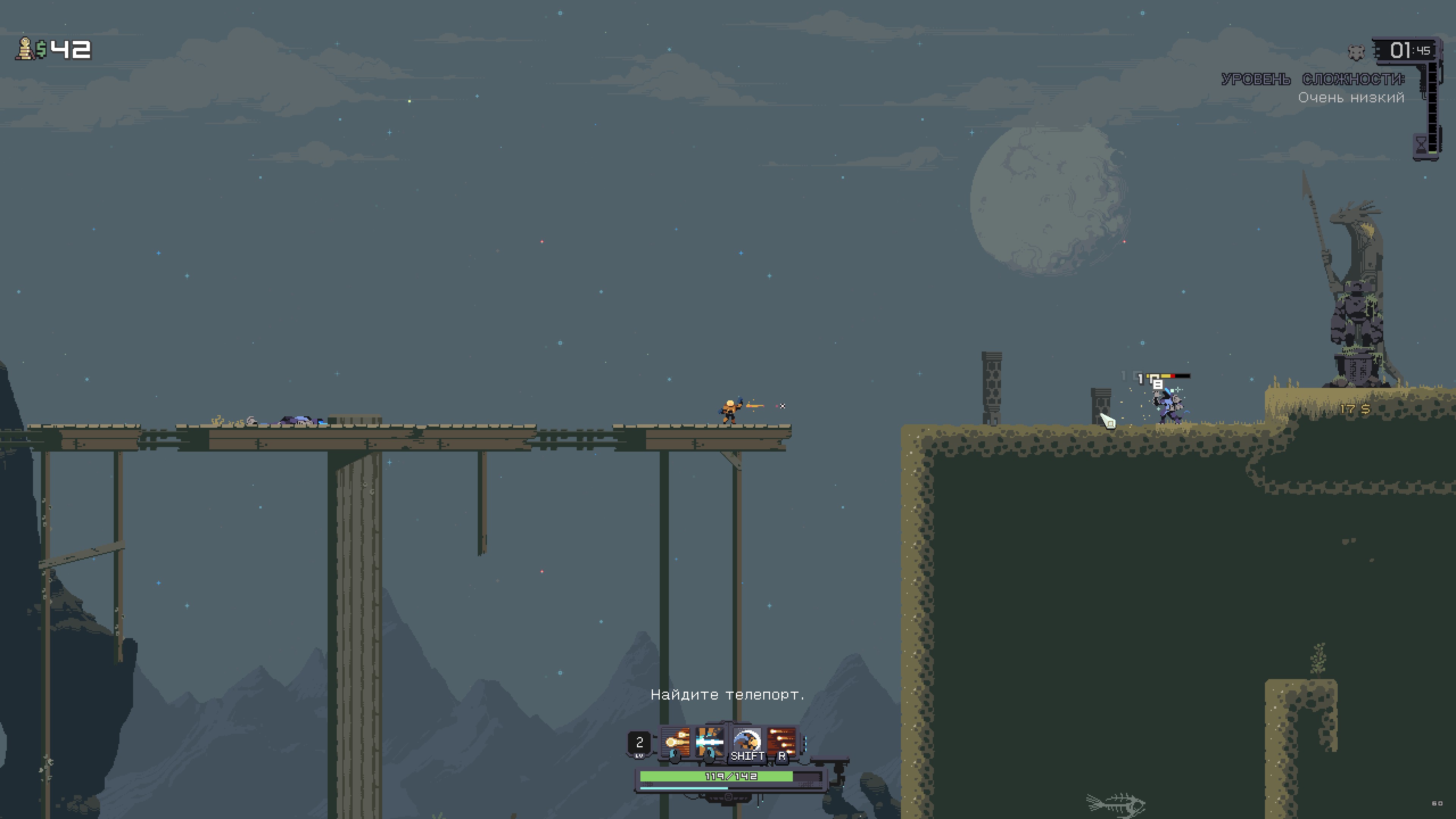 - Спуститесь на поверхность в одиночку или со своей командой! Выбирайте выживших, которые дополняют друг друга - или просто берите тех, у кого больше пушки (спойлер: у погрузчика). В совместной игре локально или по сети могут участвовать до 4 игроков. Risk of Rain Returns предлагает улучшенный многопользовательский режим: ничто не помешает вам сражаться с многочисленными монстрами Петрикора V.