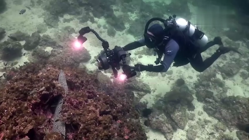 Эпизод 14 Джонатан проделал долгий путь в Оман, чтобы снять уникальное животное - акулу-зебру. Оман - красивая страна с пустынями и горами, с зеленовато-голубой водой Оманского залива, входящего в западную часть Индийского океана. Вода здесь тропической температуры, но наполнена планктоном из-за восходящих потоков питательных веществ. В результате она не очень прозрачная, как можно было ожидать от такого тропического места. Зато в ней полно рыбы. Что ж, пора отправляться на поиски акулы-зебры. Скриншоты: