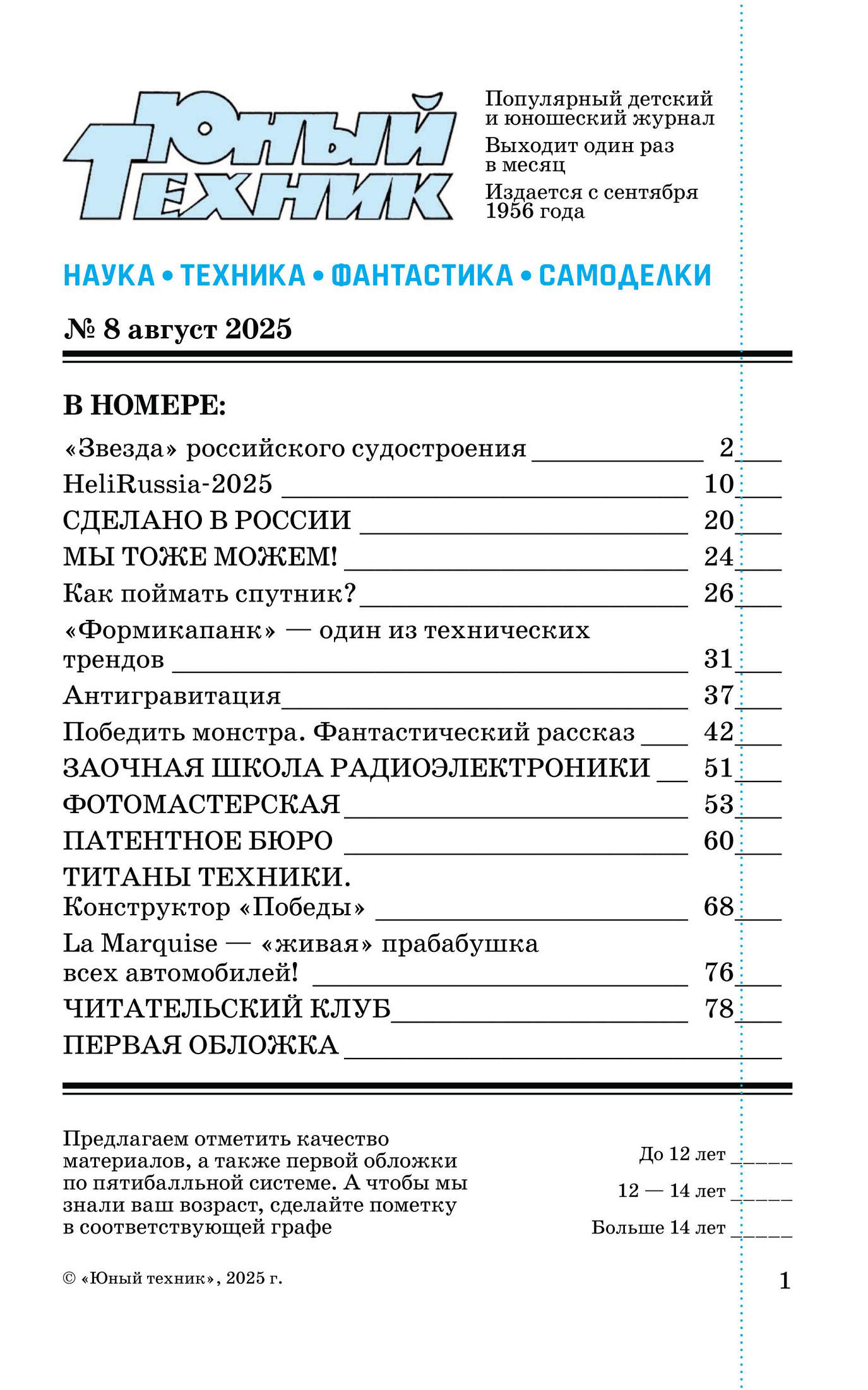 Журнал | Юный техник №8 (август 2025) [PDF]