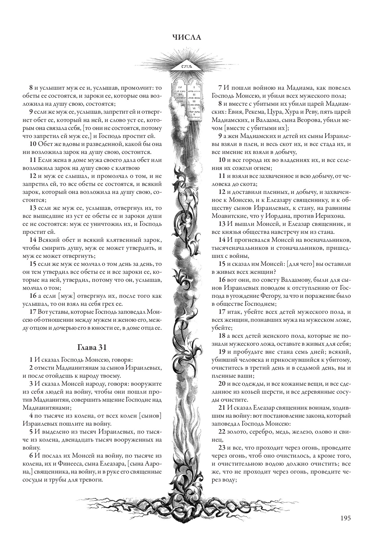 Библия, важнейшая христианская книга, за многовековую историю своего существования была переведена на множество языков мира. В XIX столетии по инициативе императора Александра I начался долгий процесс перевода Священного писания на русский язык; до этого русскоязычный читатель мог ознакомиться с библейским текстом на более сложном для понимания церковнославянском. Несколько десятилетий спустя эта работа была завершена, и полный перевод Библии для домашнего чтения был издан по благословению Святейшего Синода — отчего теперь его называют Синодальным. В наши дни Синодальный перевод считается классическим: именно он чаще всего печатается при публикации Библии на русском языке. В данном издании Синодальный перевод Нового и Ветхого заветов украшен гравюрами замечательного мастера книжной иллюстрации Гюстава Доре.
