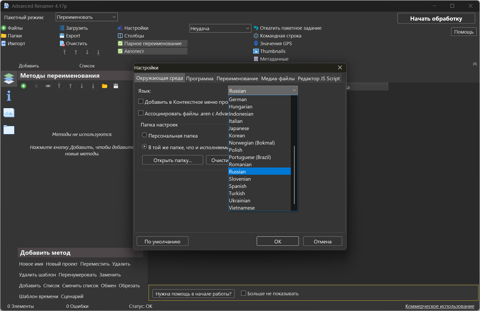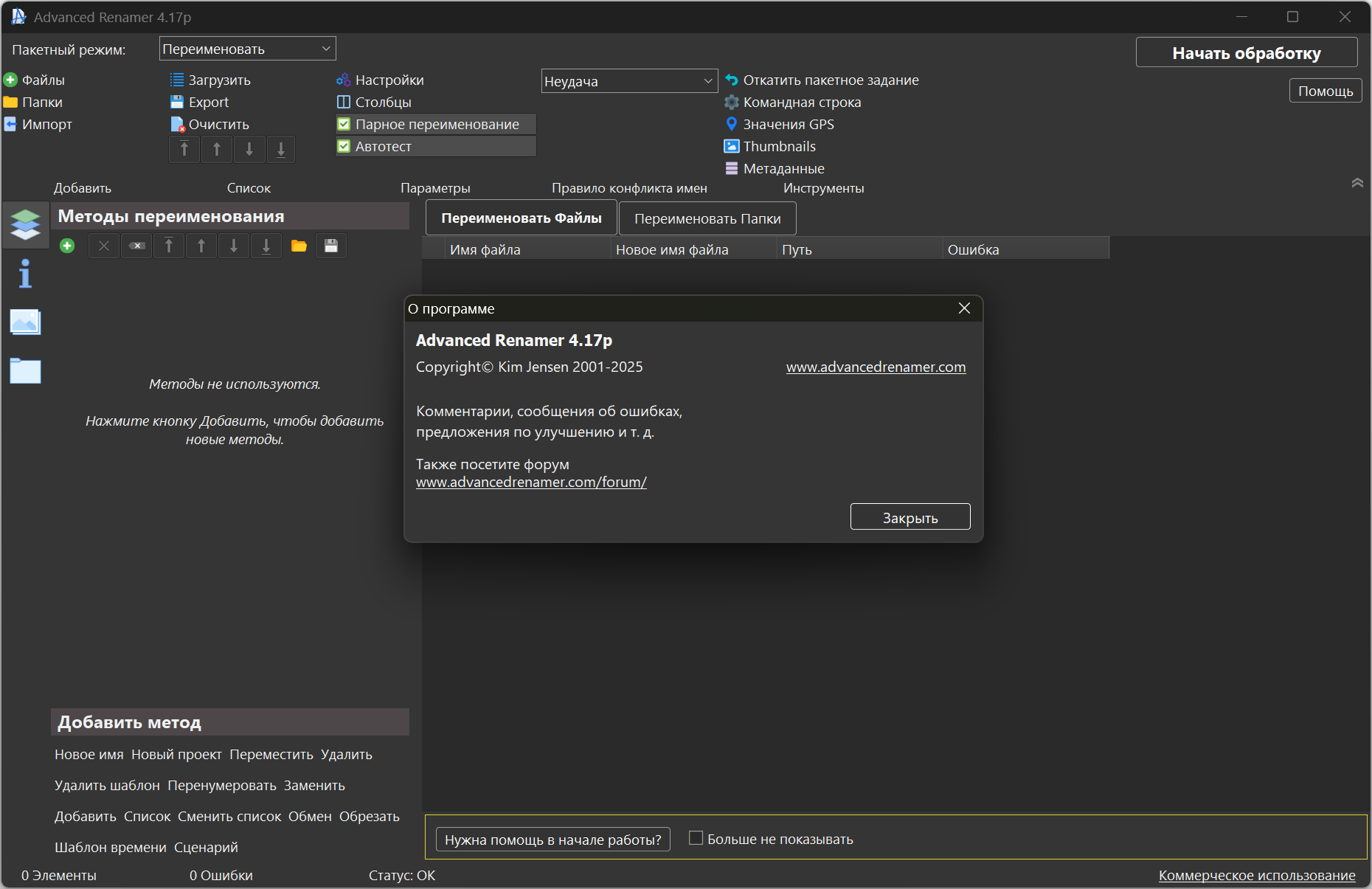 Официальный сайт: Advanced RenamerЯзык интерфейса: Русский, Английский и другие