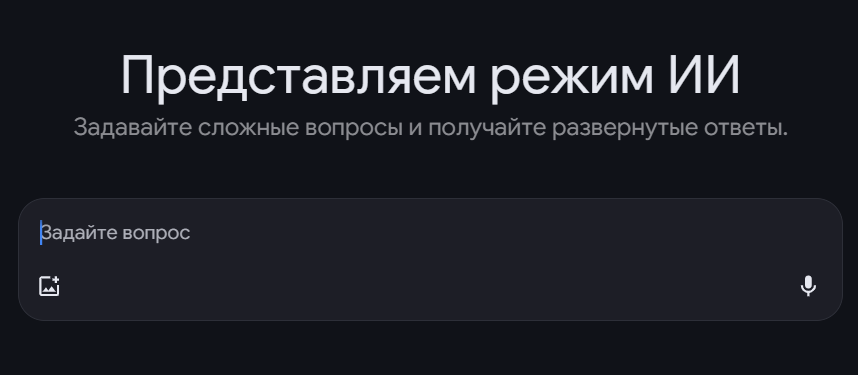 | Цитата: | Google запустил режим ИИ для поиска в России и Белоруссии |