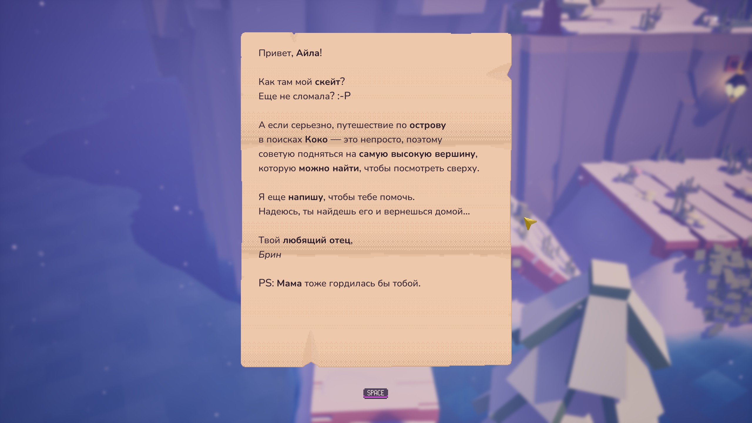 - Вы когда-нибудь мечтали полетать на скейтборде? Наслаждайтесь свежим горным ветерком, плавно скользя по воздуху над очаровательным островом на волшебной метле-скейте Айлы. В основе механики игры лежит чистая радость движения. Осваивайте и совершенствуйте свои навыки полета, поднимайтесь на новые высоты и проходите захватывающие испытания в этом платформере.