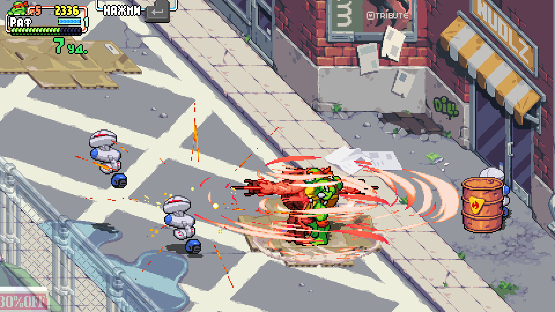 Описание:Teenage Mutant Ninja Turtles: Shredder’s Revenge - это яркий, сделанный с любовью скроллер в жанре beat ’em up, в основе которого лежит легендарный образ черепашек из 1987 года. Эта игра - дань уважения классическим играм о черепашках, таким как Turtles In Time. - Яркая пиксельная графика