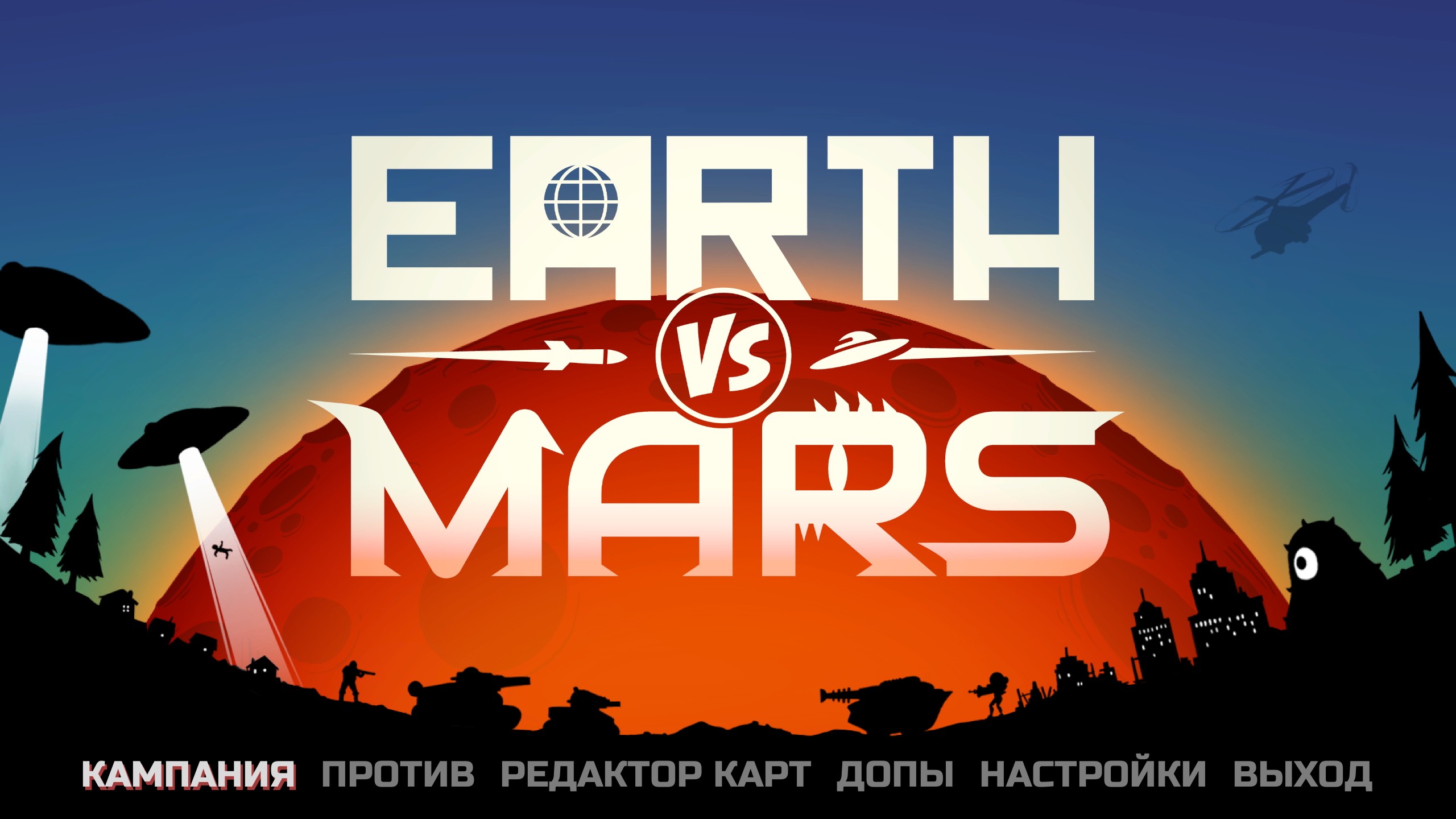 - Earth vs Mars предлагает обширную одиночную кампанию, более 30 тщательно проработанных миссий, а также захватывающие многопользовательские сражения 1 на 1. Выберите сторону – Землю или Марс – и сразитесь с другими игроками. Для любителей одиночной игры есть VS режим с боями на пользовательских картах и режим испытаний, где можно побороться за высокие результаты. А благодаря мощному редактору карт, вы сможете создавать собственные сценарии и миссии, расширяя возможности игры.