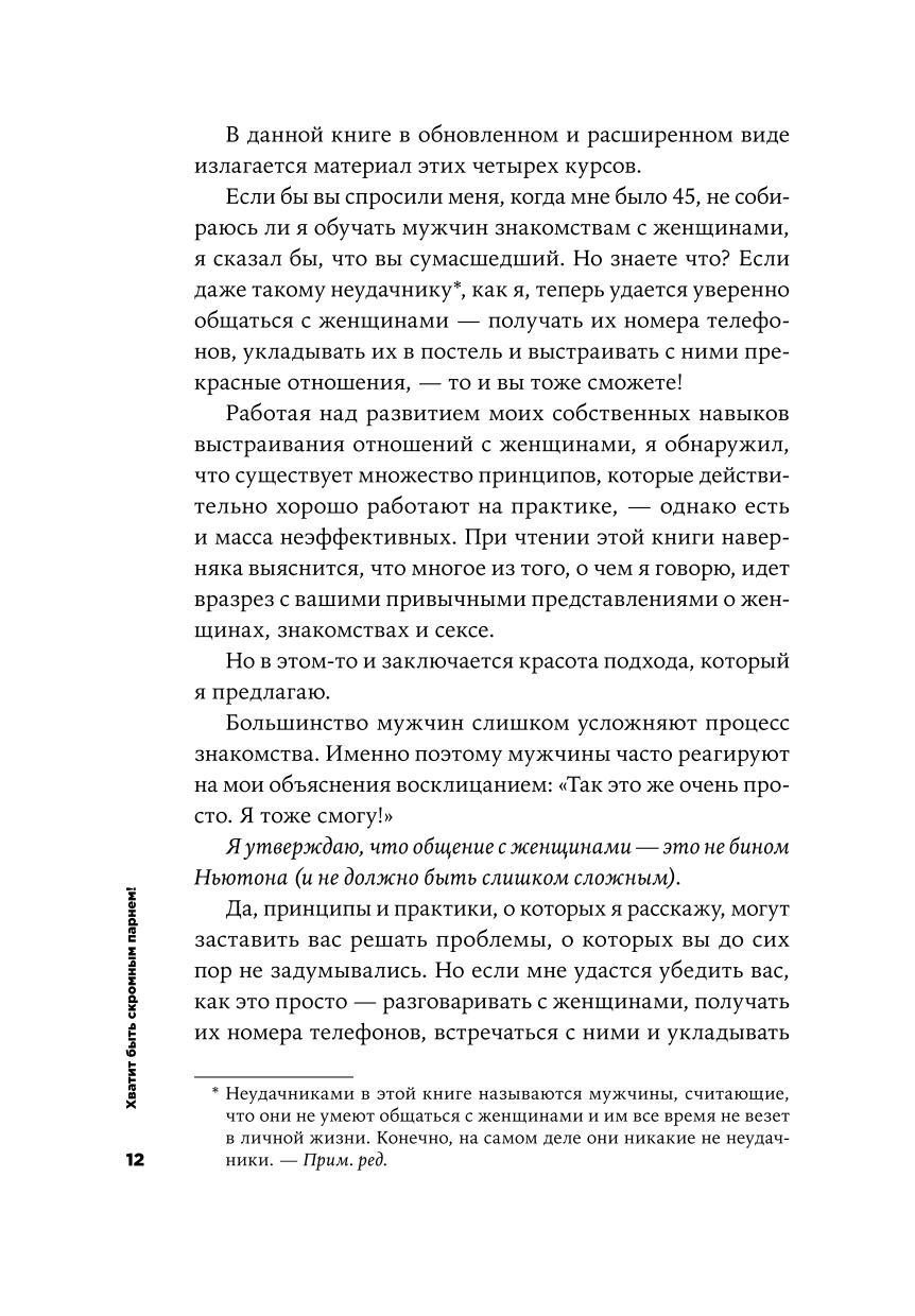 Описание:На вечеринке вы встречаете прекрасную, очаровательную девушку. Вы уже хотите подойти к ней и познакомиться, но какое-то тяжелое чувство оказывается сильнее, и вы остаетесь в стороне. Что же помешало знакомству? Может быть, это смущение или застенчивость? А может, вы решили, что покажетесь глупым или наивным или испытали страх быть отвергнутым? Если вы хотите развить уверенность в себе, научиться непринужденно общаться с женщинами и оставаться обаятельным в любых обстоятельствах, вам поможет новая книга Роберта Гловера, автора бестселлера «Хватит быть славным парнем». Вы сможете противостоять своим страхам, осознаете и преодолеете ограничивающие убеждения, забудете неудачный опыт, научитесь понимать себя и других и уже никогда не будете стоять в стороне, встретив интересную девушку.