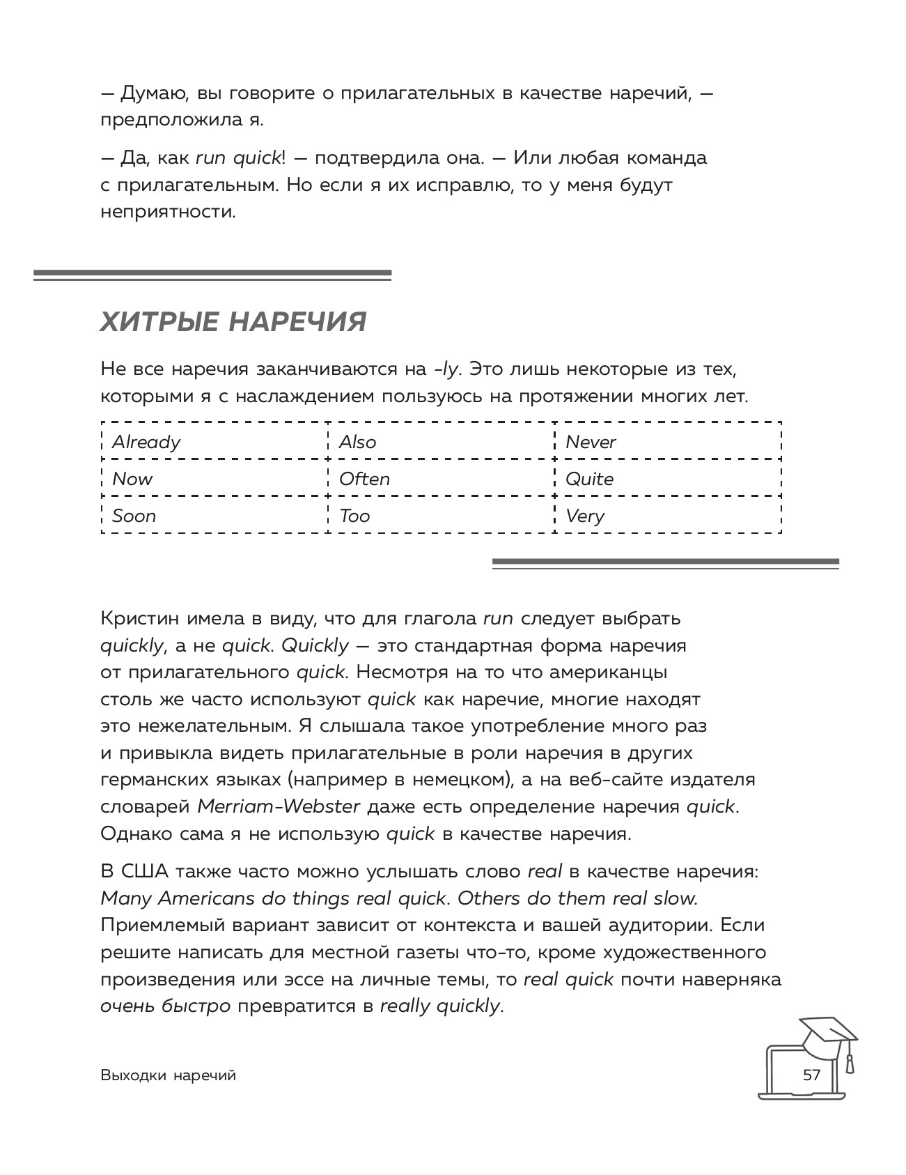 Наполненная лингвистическими дискуссиями, она порадует любого, кто хочет знать больше об английском языке. Эта книга станет для вас увлекательным путешествием по сложным предложениям, поможет избавиться от страха точки с запятой, объяснит, почему affect и effect не одно и то же, и подскажет, чем дефисы и тире отличаются друг от друга.