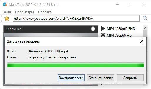 Описание:MassTube — очень простая в использовании программа для скачивания видео с YouTube (и не только) с помощью одного клика. Достаточно в строку поиска вставить адрес понравившегося ролика и нажать поиск, после чего программа предоставит список форматов и разрешений, в которых можно быстро скачать данный клип.