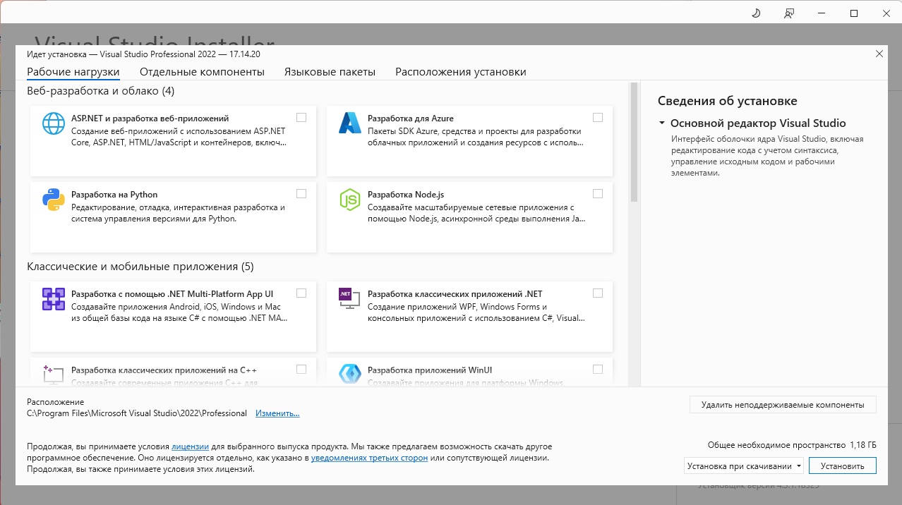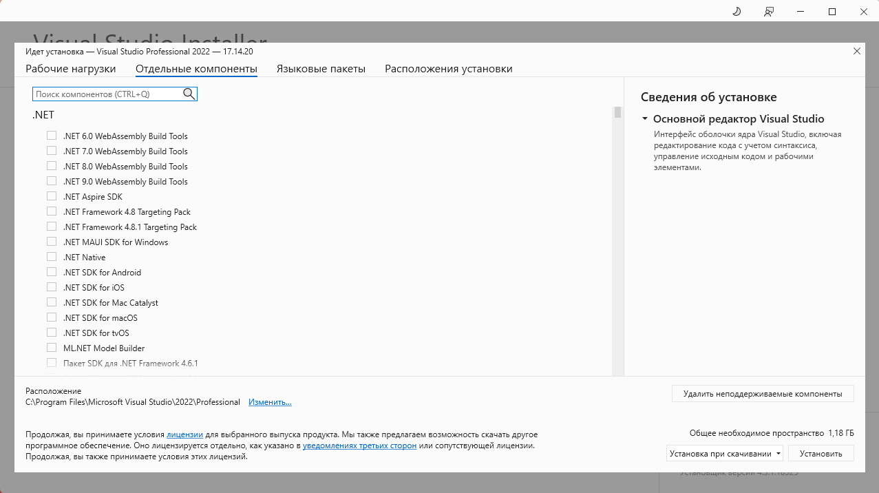 Для работы Visual Studio требуется .NET Framework 4.8. Если .NET Framework 4.8 еще не установлен, он будет установлен во время установки.