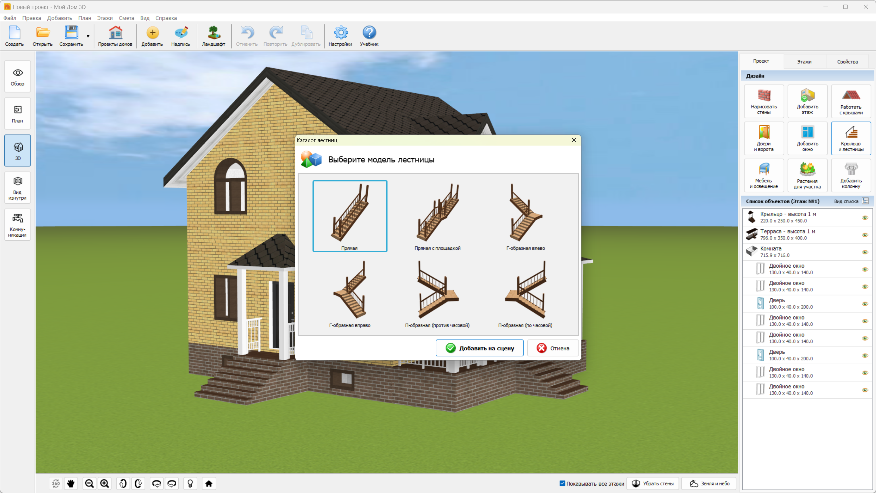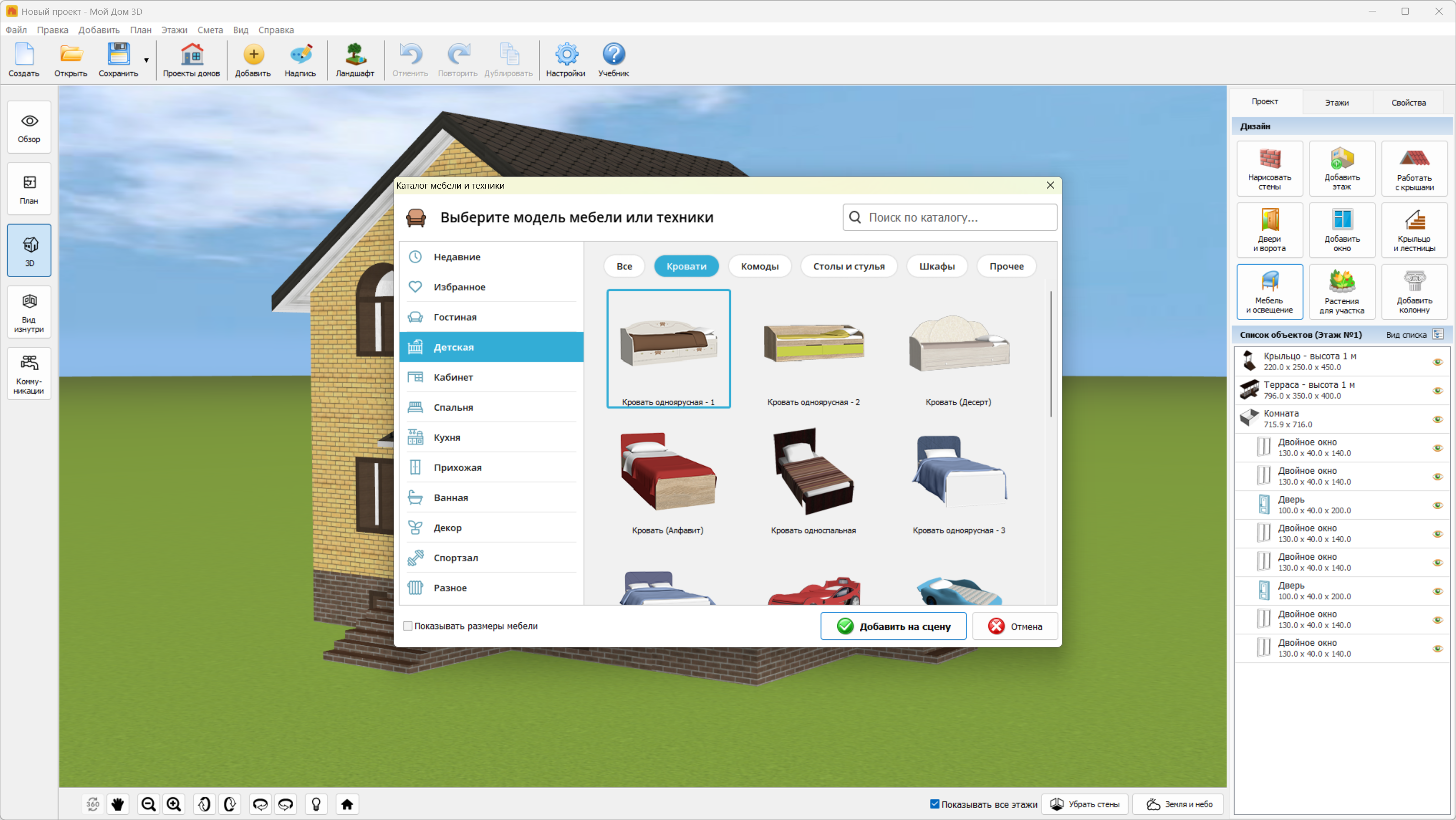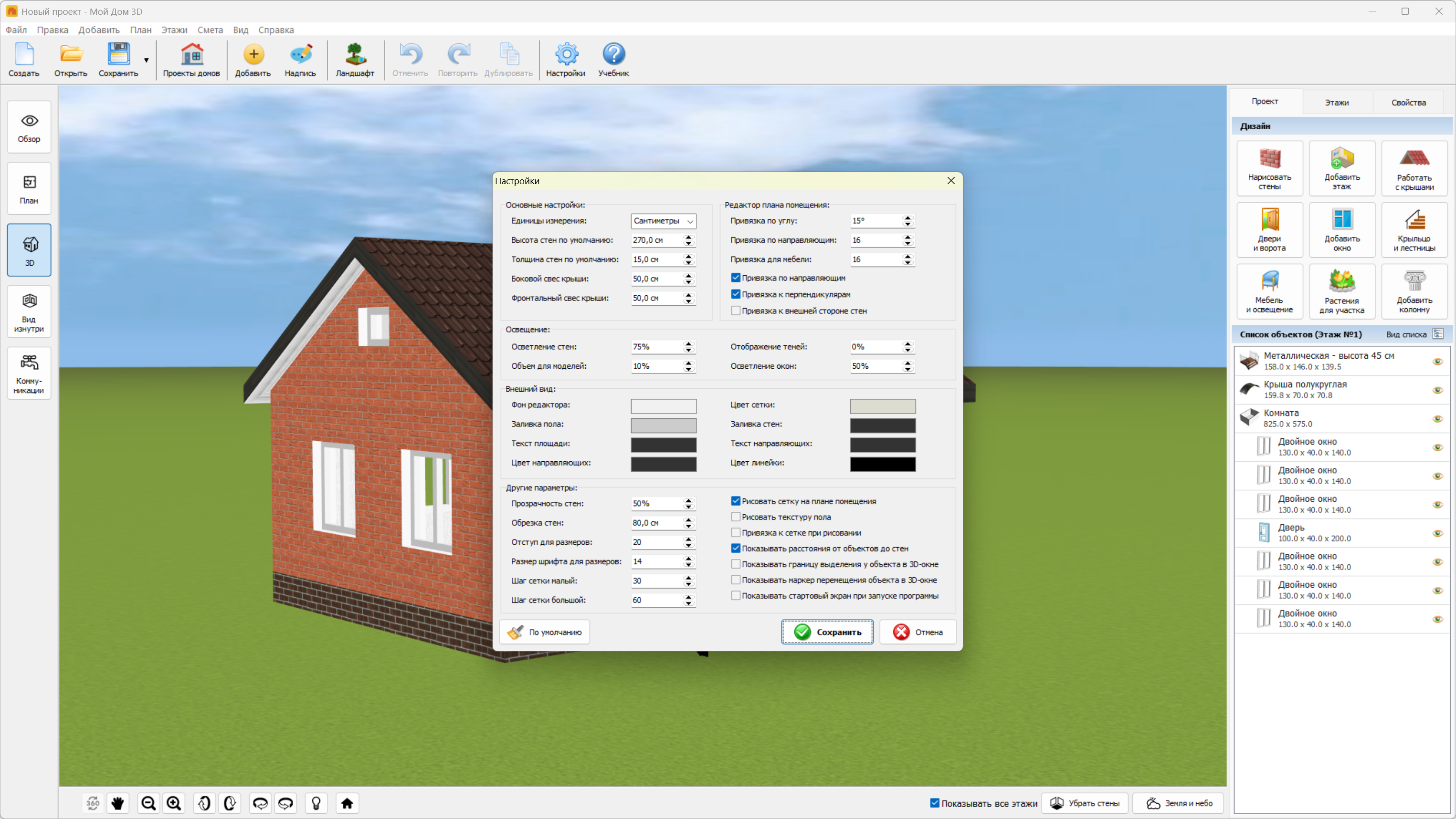Описание:Мой Дом 3D - это простая и удобная программа для проектирования домов, хозяйственных блоков, гаражей и других построек. Своими руками вы сможете сделать дизайн фасадов и внутренней отделки помещений, а ЗD-камера покажет ваш проект в режиме реального присутствия. Продукт включает в себя добавление необходимых объектов, таких как: двери, окна, лестницы, колонны, мебель, светильники и бытовая техника. Встроенный каталог материалов содержит более 500 текстур и поможет изменить внешний вид любого объекта. - Создание дома любого вида. ПО позволяет нарисовать произвольный план здания или же загрузить свой чертеж. В первом случае вы делаете проект с нуля и вручную задаете размеры, а во втором импортируете имеющееся у вас фото или скан. Также в каталоге есть готовые модели домов, которые можно взять в качестве шаблона.