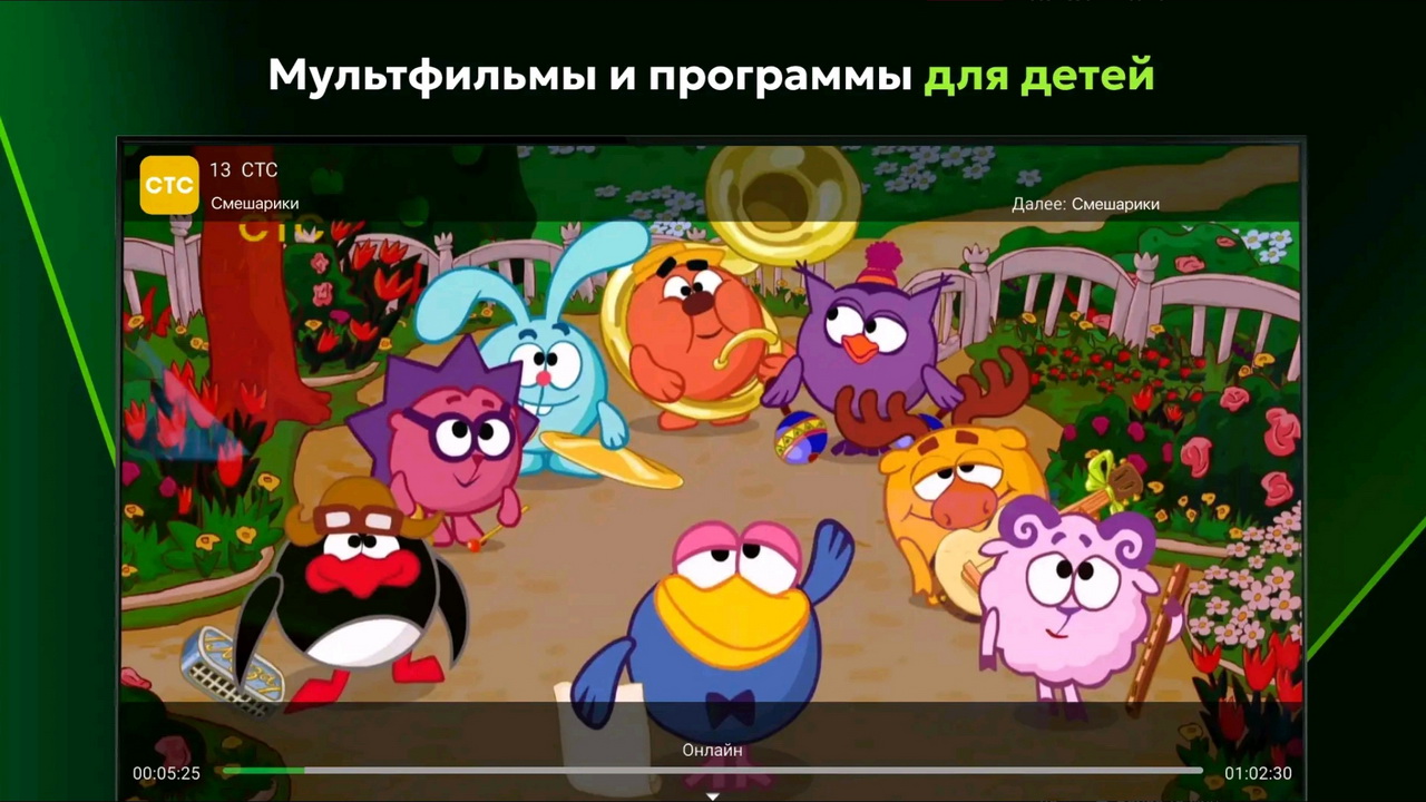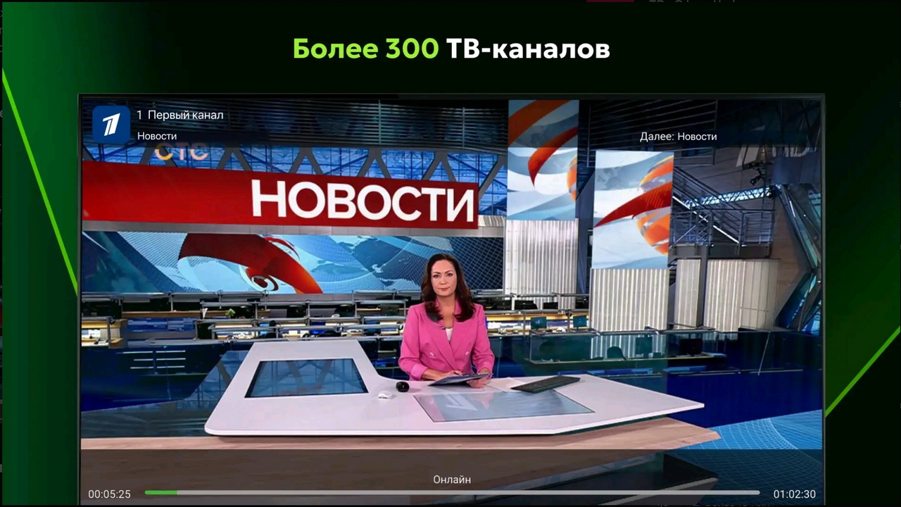 К просмотру доступны развлекательные, детские, спортивные, образовательные, новостные, музыкальные и другие ТВ-программы с возможностью записи, паузы и перемотки.