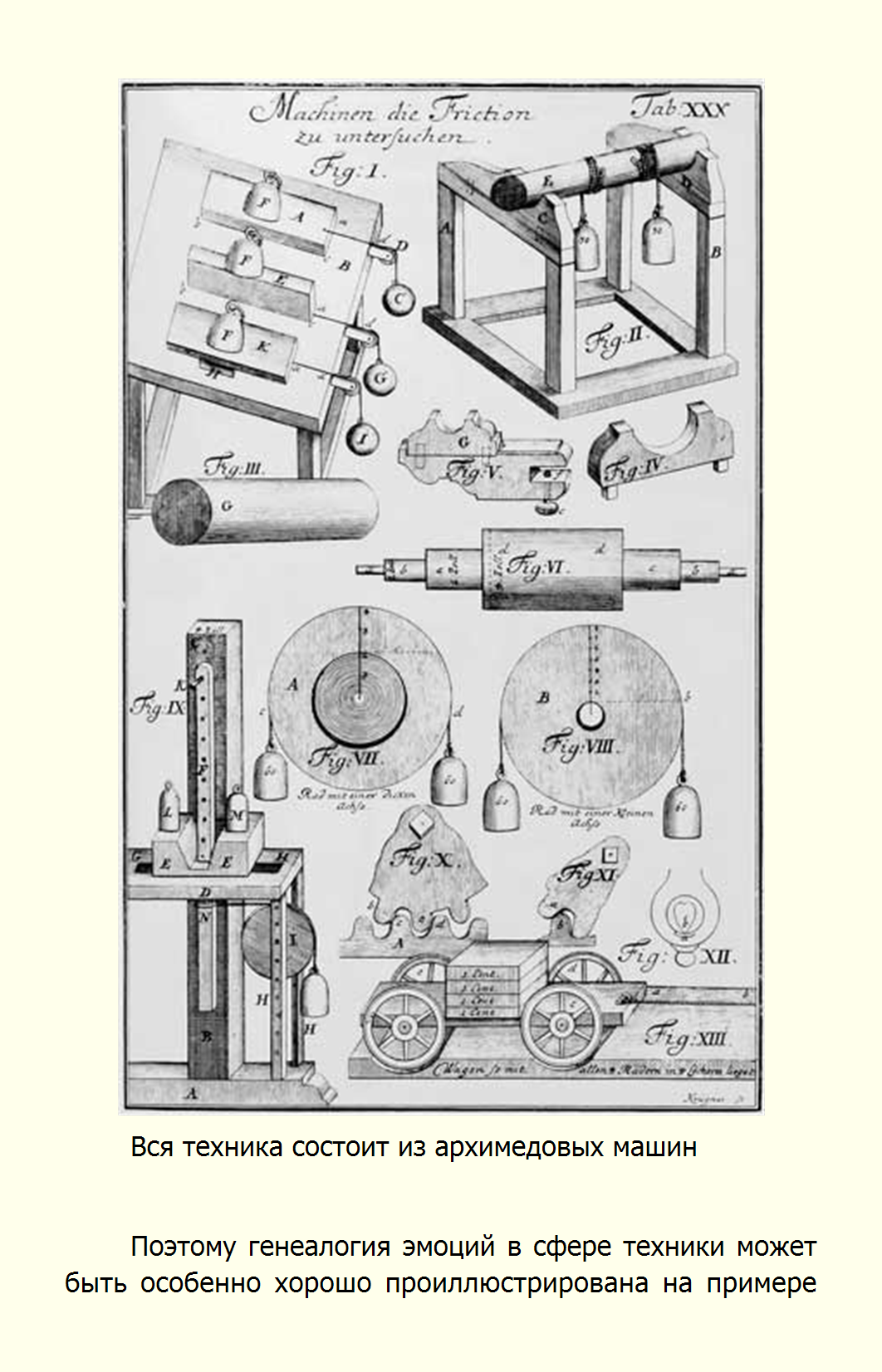 На заре технического развития парящие божества античного театра, флейтист и утка Жака де Вокансона служили прежде всего для изумления публики. Однако механизмы по определению вызывают у человека смесь восхищения и тревоги, эти комплексные эмоции Штрассберг называет аффектами. Занимательные диковинки кунсткамер символизировали, что Бог – всемогущий создатель. Изобретение часового механизма проложило дорогу механистическому пониманию государства и природы. Паровой двигатель изменил труд рабочего и вдохновил пророков промышленного капитализма. Но нашему желанию использовать технологии противостоит страх перед божественным наказанием, издревле присущий европейской культуре.