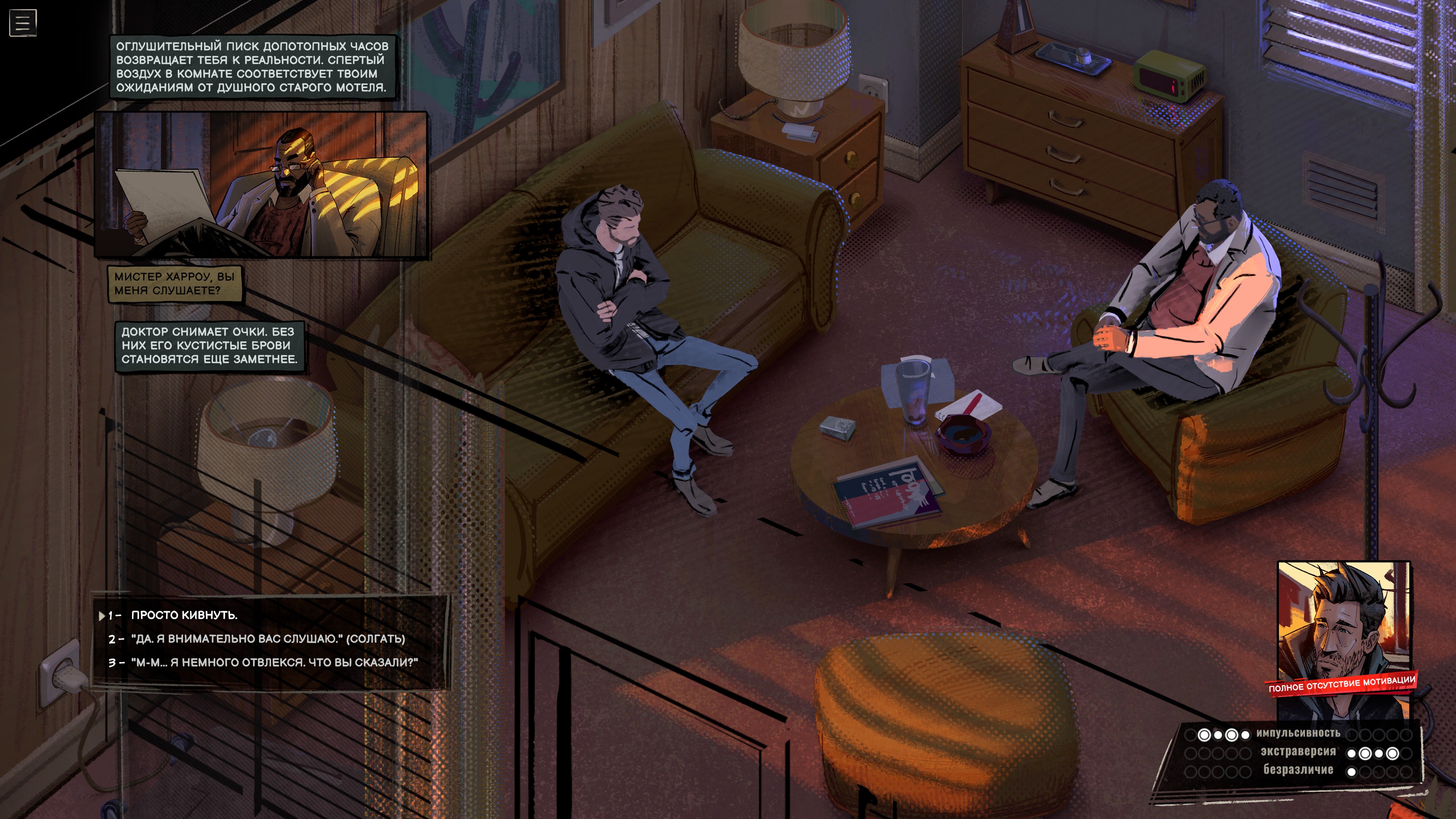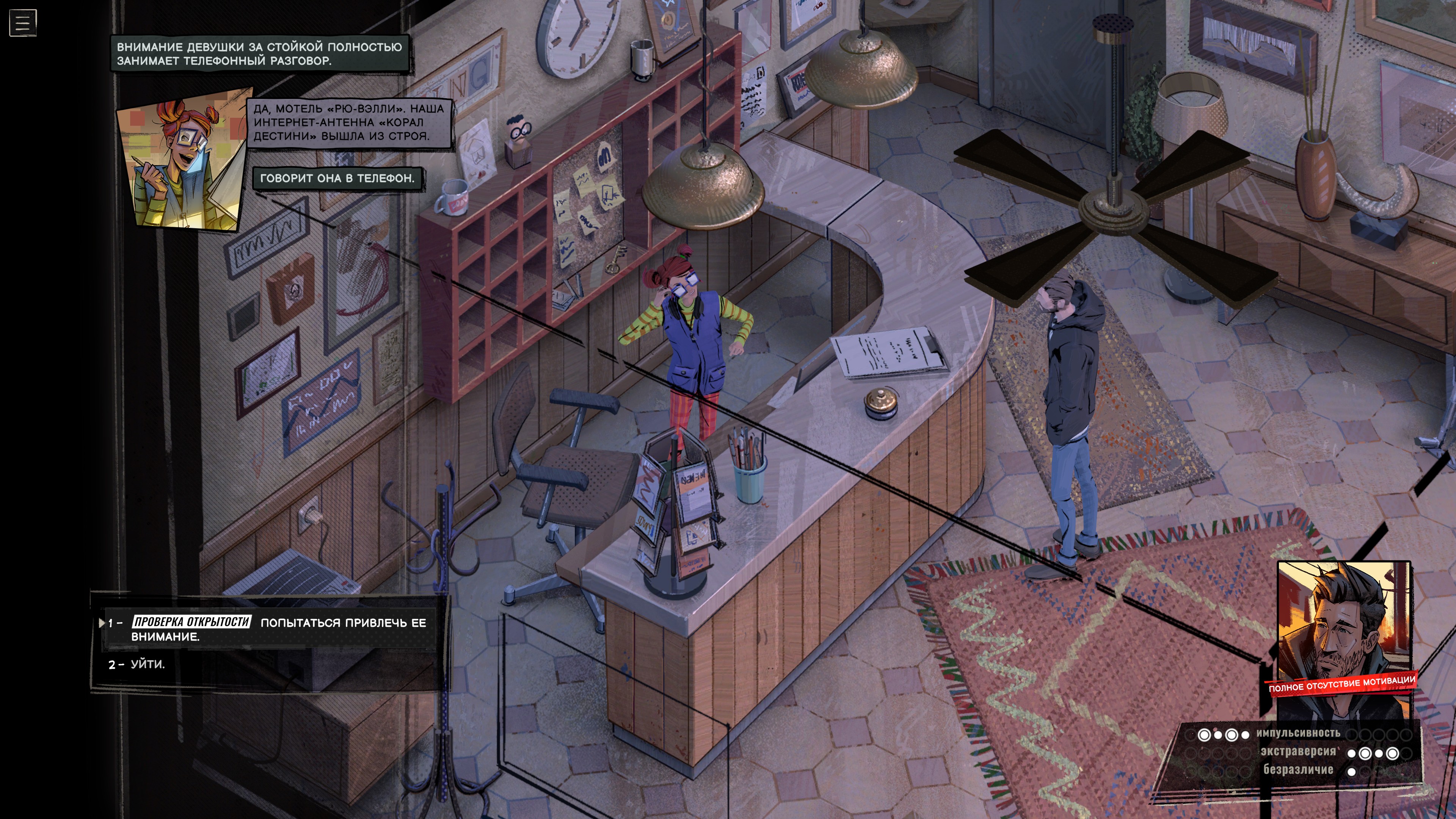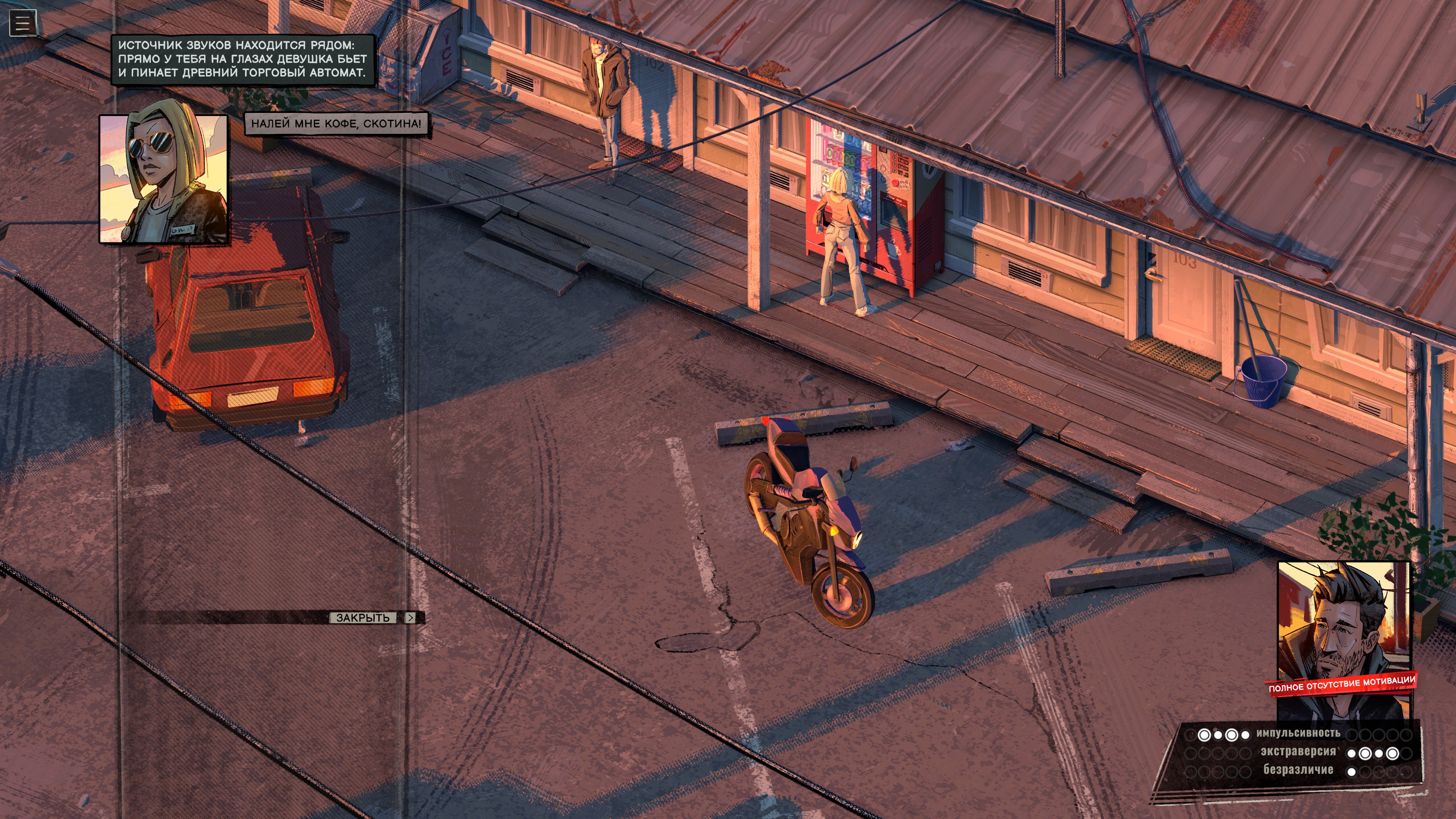 Накапливайте воспоминания, открывайте новые намерения, меняйте образ мыслей и создавайте свою неповторимую историю. Выйдите за рамки привычного мышления, чтобы открыть неожиданные и забавные реплики, и узнайте, как эффекты состояний влияют на личность героя. Например, алкоголь может сделать его более общительным, а тревога - ранимым.